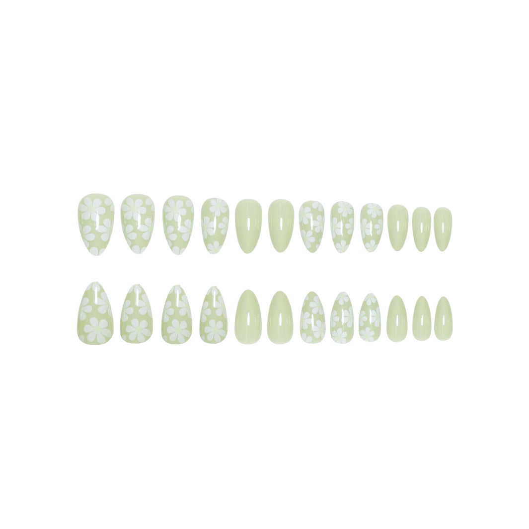Add a touch of nature-inspired charm to your nails with these floral press-on nails. Designed in a medium almond shape, the sage green base is adorned with delicate flower patterns for a fresh and feminine look. Crafted from high-quality acrylic, these nails are lightweight, durable, and easy to apply with glue, making it simple to achieve a salon-quality manicure at home. Perfect for everyday wear, spring outings, or special occasions, these nails bring a natural elegance to any outfit. The subtle floral design offers a versatile style that complements a variety of fashion choices. Handpicked from Abroad, this set reflects international nail trends, allowing you to enjoy a fresh, stylish look effortlessly.