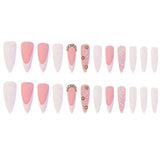 Turn your manicure into a statement with these Floral Rhinestone Stiletto Press-On Nails. Featuring a blend of soft pink and white tones, each nail is designed with elegant floral patterns, sparkling rhinestones, and glossy white accents that create a sweet yet glamorous look. The long almond-shaped stiletto design enhances your fingers’ natural elegance while adding a modern, high-fashion edge. Crafted from a mix of matte and glossy finishes, these press-on nails deliver a unique contrast that feels both chic and stylish. Lightweight and easy to apply, they provide salon-quality results in minutes without the expense or wait time. Handpicked from Abroad, this collection draws inspiration from international nail art trends, giving you a design that’s versatile enough for parties, weddings, or daily glam. These nails are perfect for anyone who wants to combine elegance with a bold, modern twist.