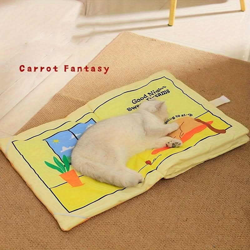 Delight your feline friend with the Foldable Cartoon Book Cat Sleeping Mat, a fun and functional accessory perfect for cats of all sizes. Shaped like an open book, this creative design adds a playful touch to your pet’s space while offering a cozy resting spot.