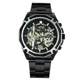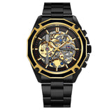 Add a bold statement to your wrist with this Men's Automatic Mechanical Watch, designed for the modern professional. Featuring a hollow dial with transparent back and world time functionality, it combines classic appeal with advanced utility.