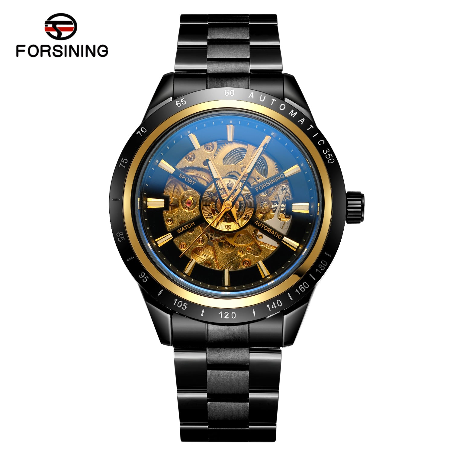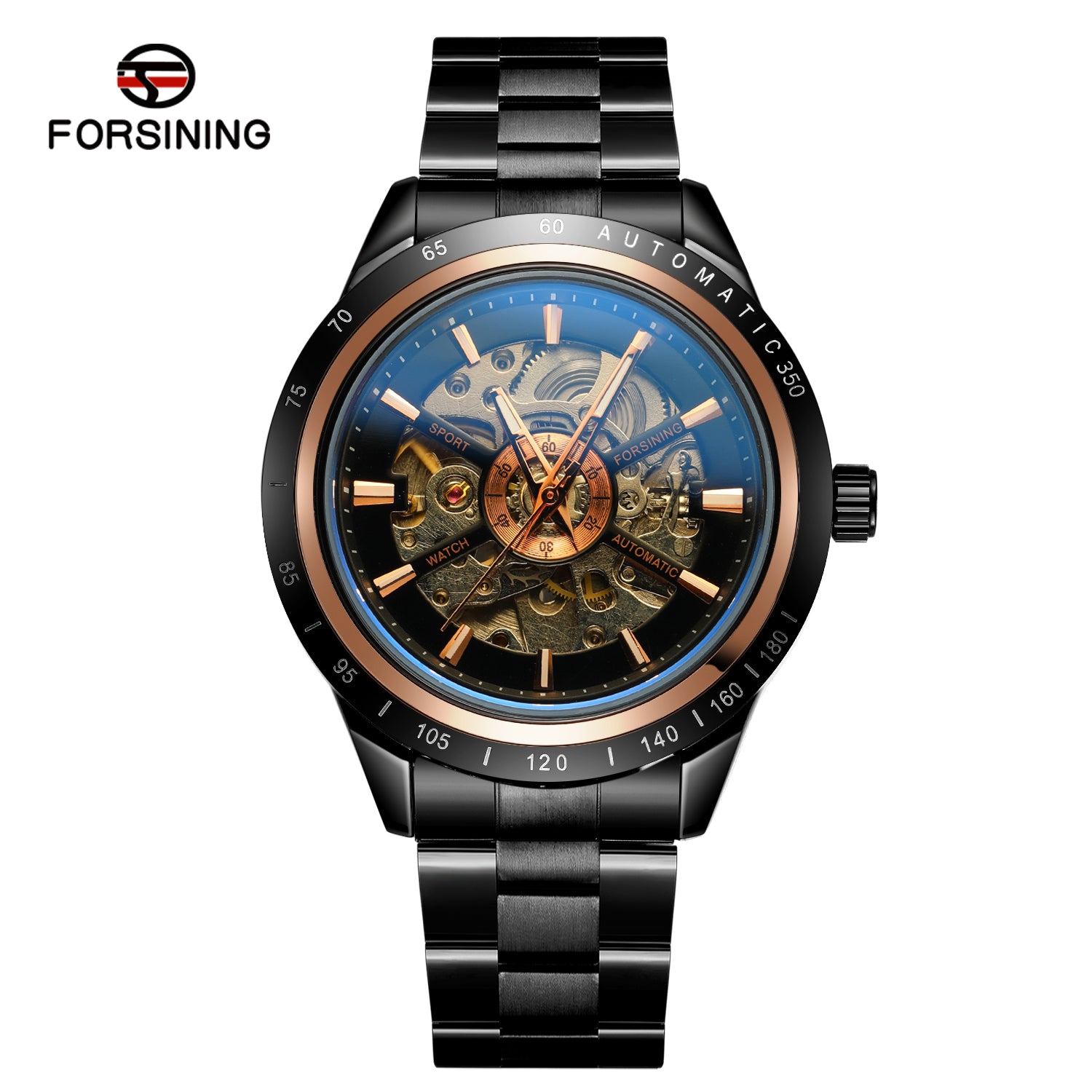 The automatic movement ensures reliable timekeeping without the need for batteries, while the single folding buckle and polished alloy strap offer a secure, stylish fit. Its luminous blue glass detail gives the dial a modern, standout appearance.