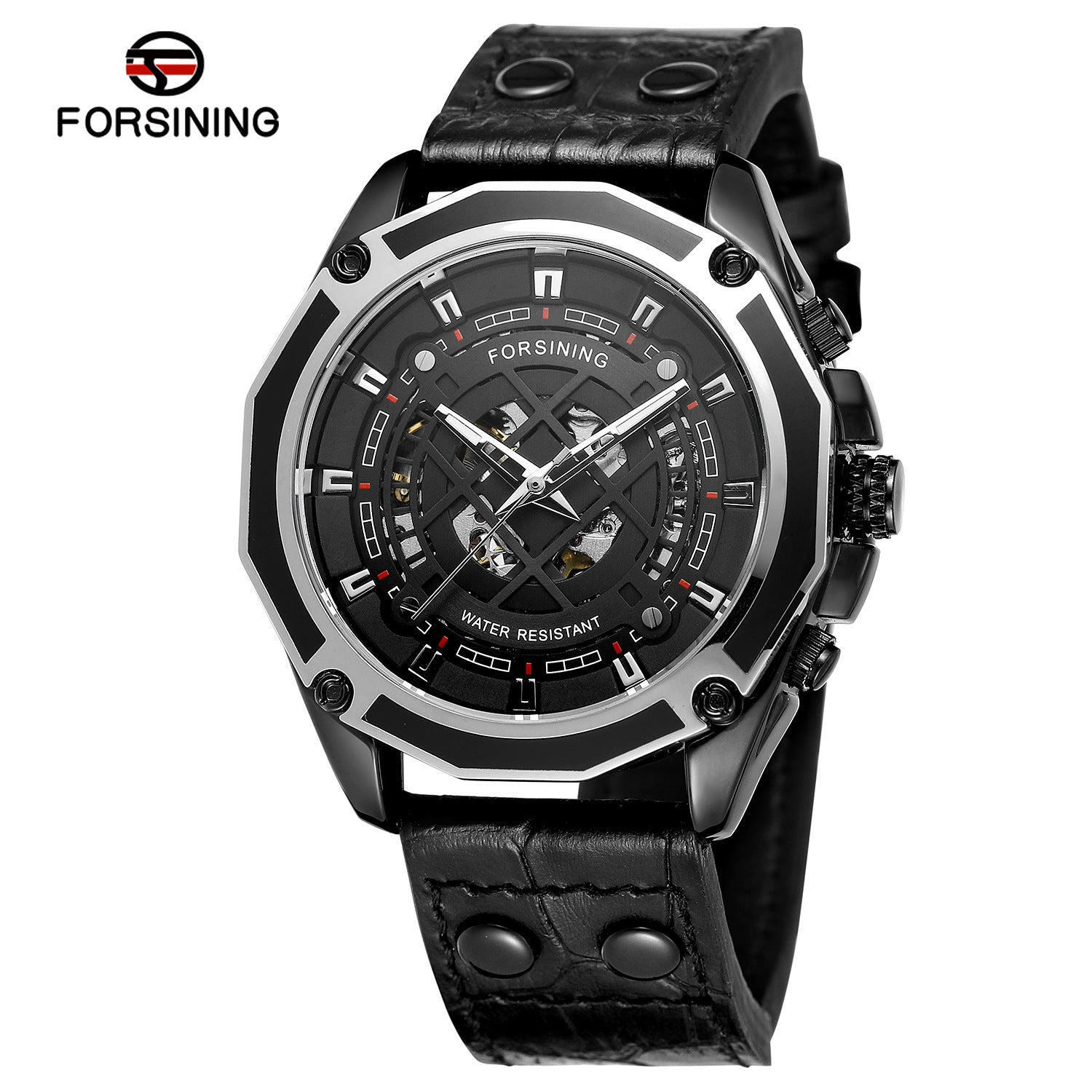 Crafted with a durable mineral-reinforced glass mirror, leather strap, and alloy case, this automatic watch delivers both reliability and eye-catching appeal. Whether you're dressing up or down, this timepiece makes a confident statement on any wrist.