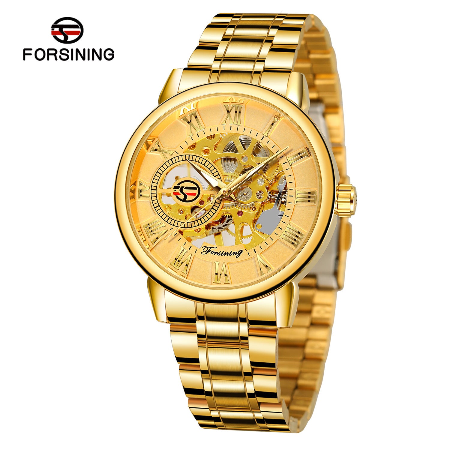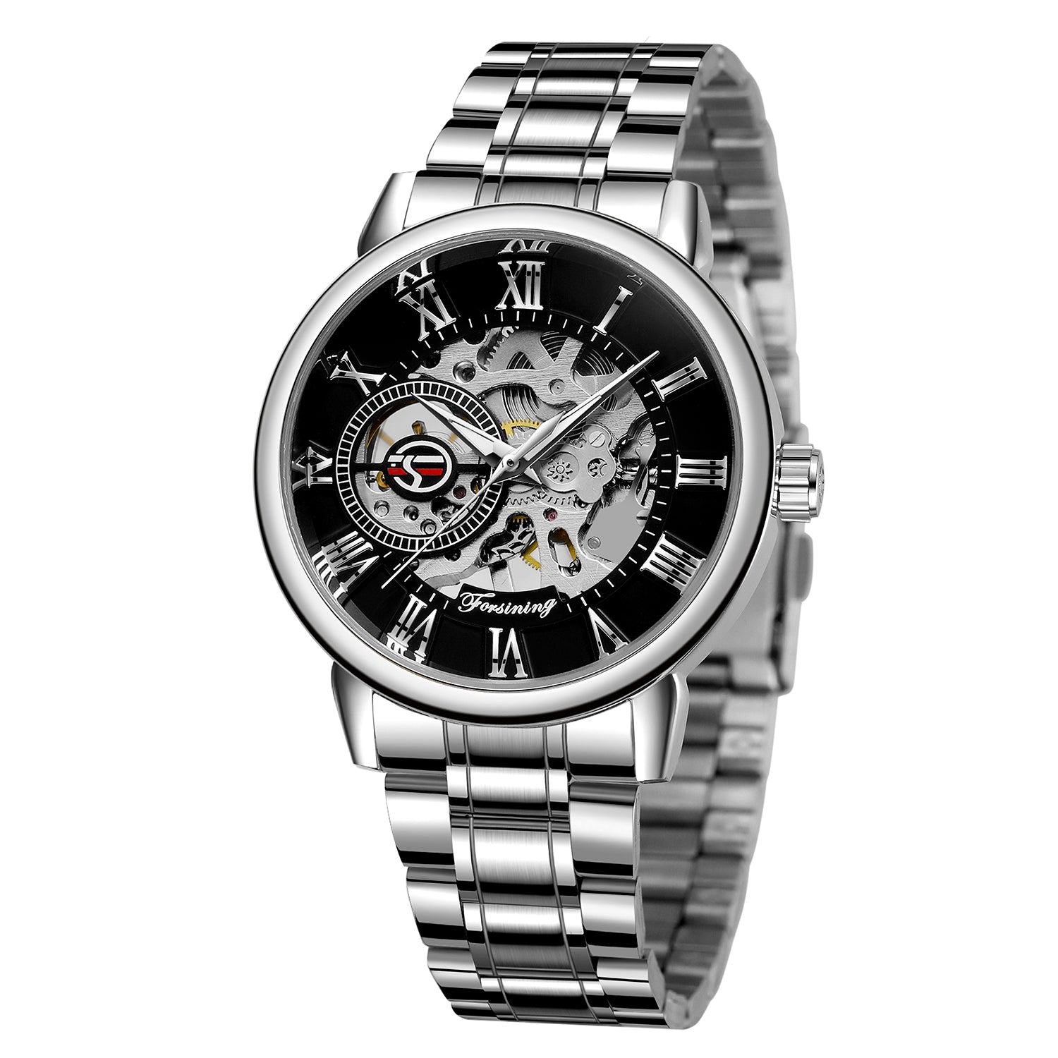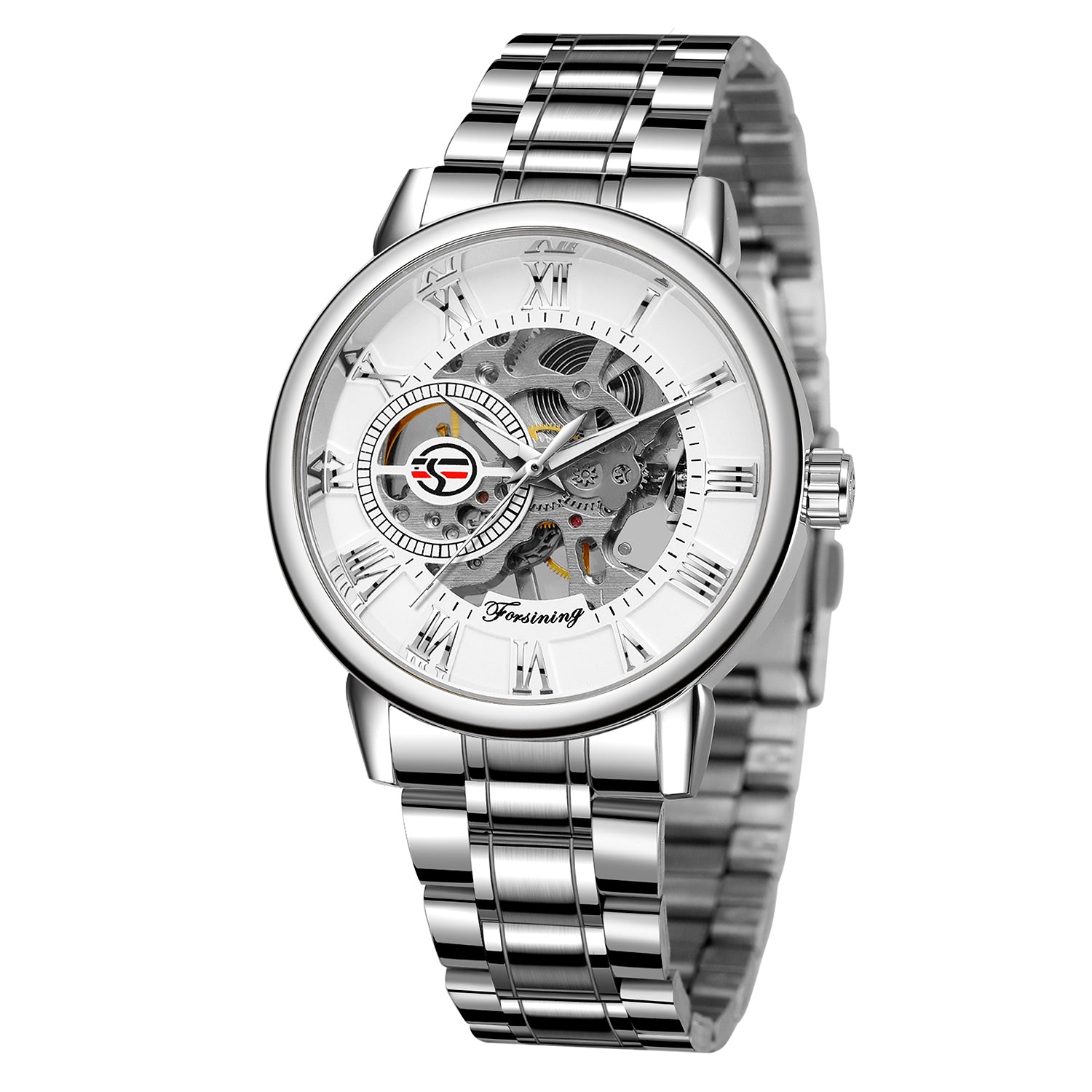 Make a bold impression with the Forsining Men's Mechanical Skeleton Watch, designed for fashion-forward individuals who appreciate refined details. This automatic watch features a striking 41mm hollow dial that reveals the mechanical movement within, adding a modern twist to classic horology.
