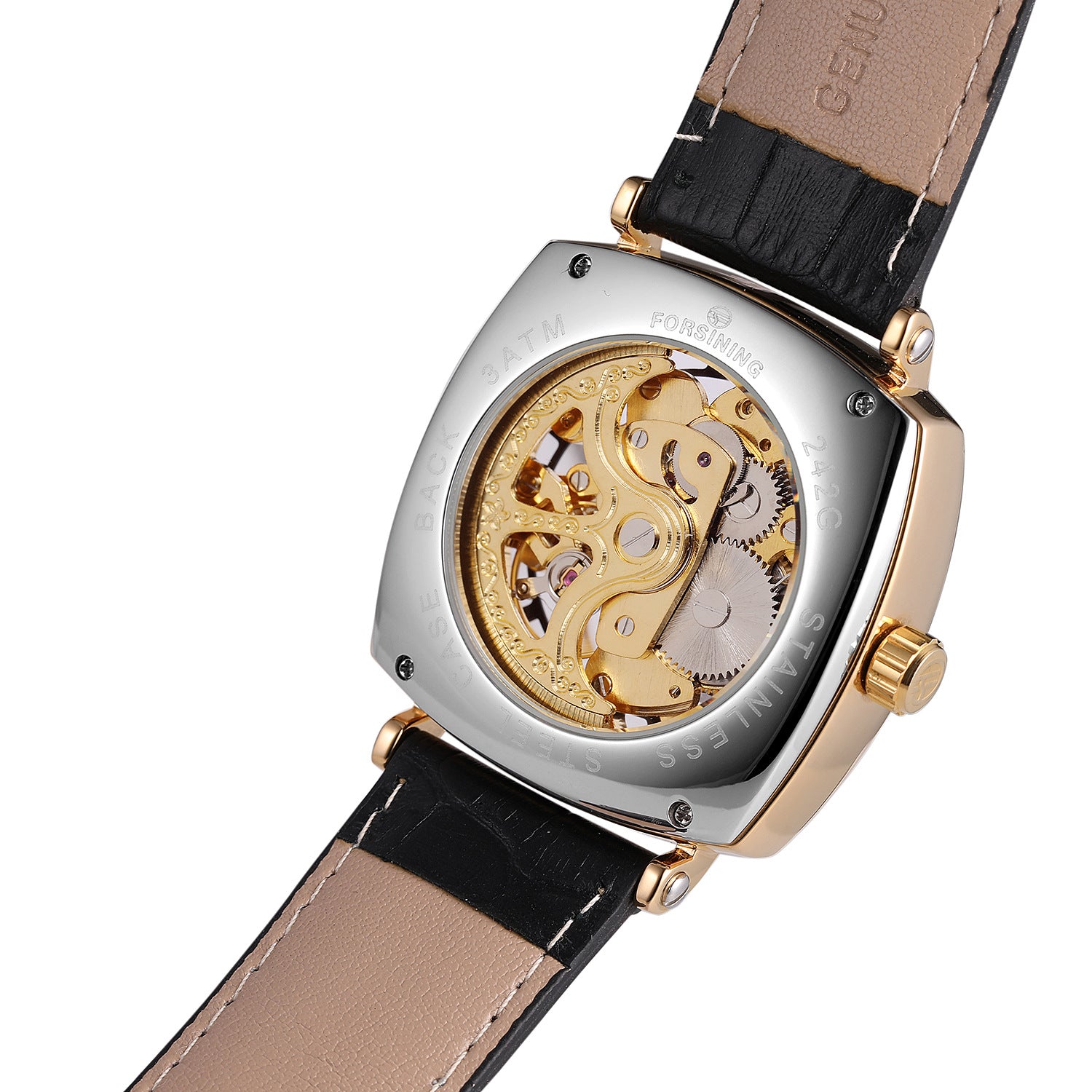 Elevate your professional look with this stylish men's mechanical watch, designed with a distinctive square dial and multicolor alloy case. Featuring a mechanical movement and transparent bottom, this timepiece showcases its inner workings with timeless appeal.