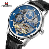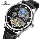 Make a bold statement with the Forsining Men's Automatic Mechanical Watch featuring moon phase, GMT dual time, and tourbillon-inspired design. Crafted with a 43mm round dial and a sleek leather strap, this fashion-forward timepiece balances elegance and innovation.