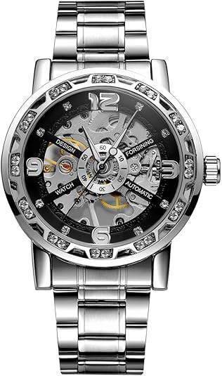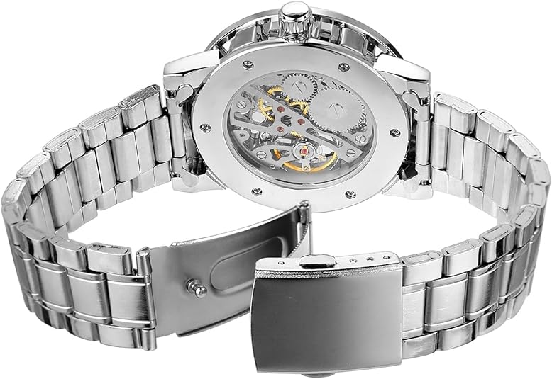 The transparent back, flat-top conical crown, and mineral-reinforced glass mirror give it a refined, modern edge. A sturdy alloy strap with a secure folding buckle ensures long-lasting wear, while the fashion-forward skeleton dial makes it a standout accessory for casual and dress occasions alike.