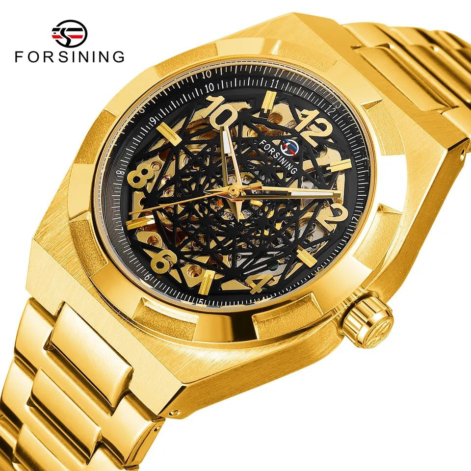 Upgrade your accessory game with the Forsining hollow automatic mechanical watch for men, a perfect blend of fashion and functionality. Featuring a bold skeleton dial and powered by a reliable mechanical movement, this watch offers timeless style with a modern edge.