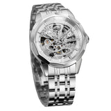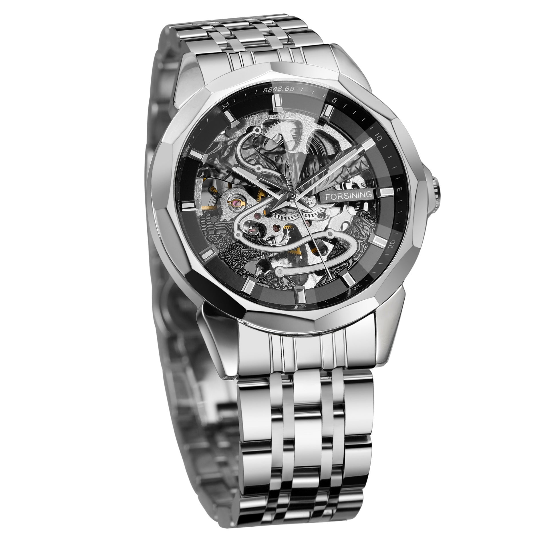 Elevate your accessory game with the Forsining Men's Fashion Mechanical Watch, a timepiece that blends luxury with daily durability. Featuring a sleek round dial encased in durable alloy and protected by a scratch-resistant diamond-cut mineral glass mirror, this watch is both bold and refined.
