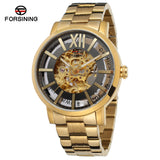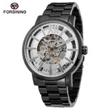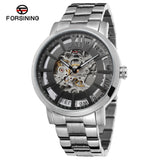 Discover bold elegance with the FORSINING Men's Skeleton Automatic Watch — a standout piece crafted for the modern trendsetter. This fashion-forward watch features a hollow dial that exposes its precise mechanical movement, combining aesthetics with engineering.
