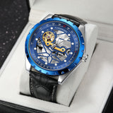 Turn heads with the FORSINING Men's Skeleton Mechanical Watch — a stylish fusion of sport and sophistication. Designed with a fully automatic movement and a striking double transparent hollow dial, this watch gives you a front-row view of its mechanical heart in action.
