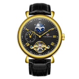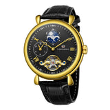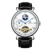 The 45mm alloy case is paired with a scratch-resistant mineral glass mirror and a premium leather strap for all-day comfort and elegance. The tourbillon feature enhances mechanical precision while adding a touch of sophistication.