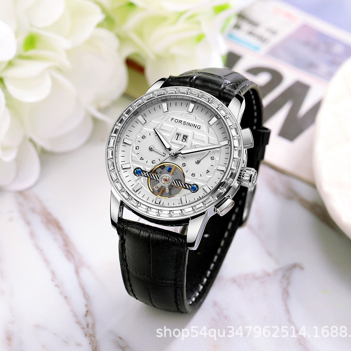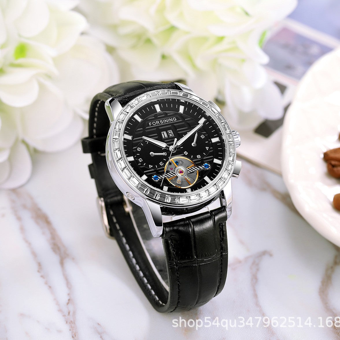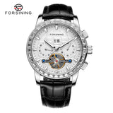 Elevate your everyday look with the FORSINING Men's Tourbillon Mechanical Watch — where timeless design meets modern functionality. This stylish watch features a luminous dial for clear visibility in low light, along with a visible tourbillon mechanism and full calendar display including week and month indicators.