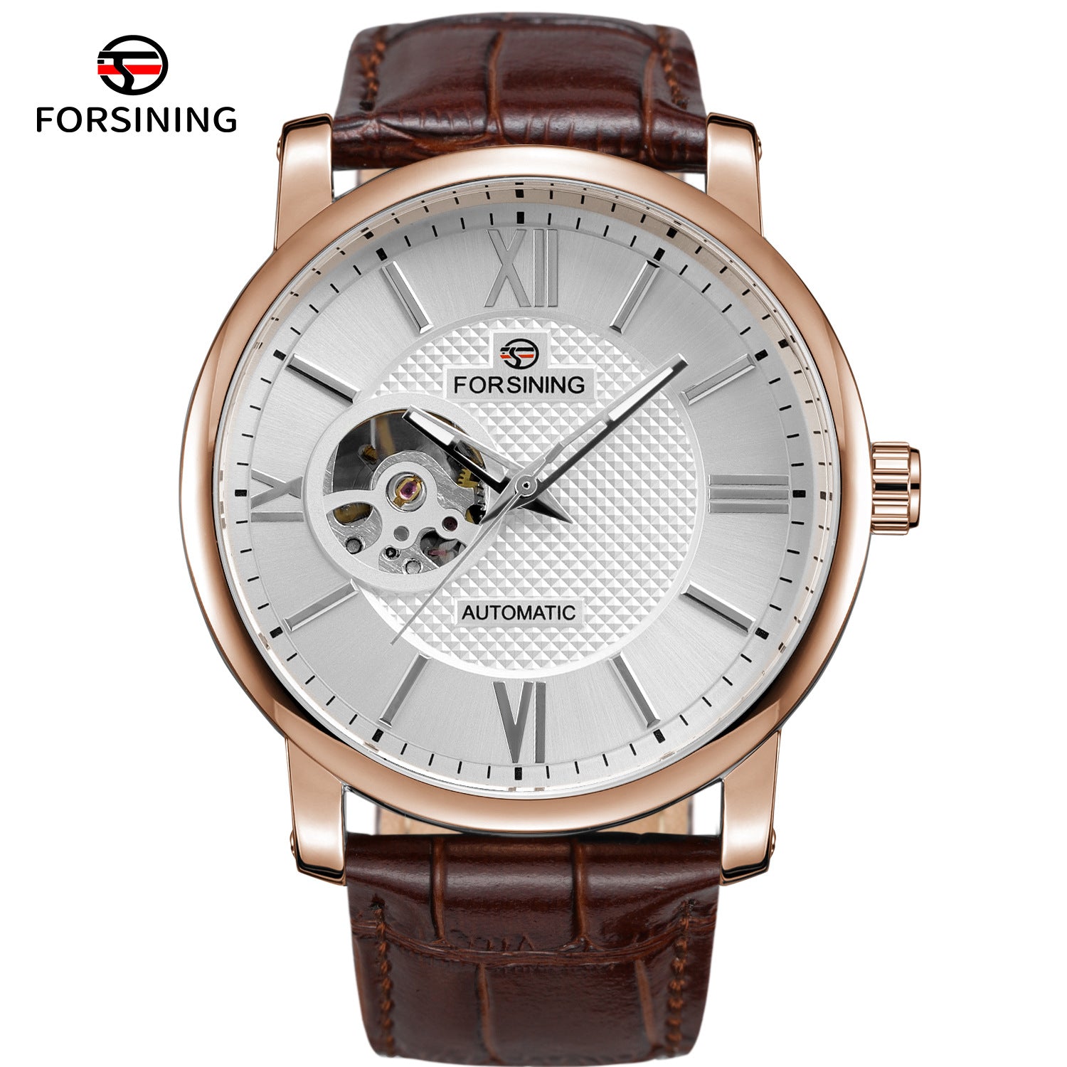 The 44.5mm round alloy case is paired with a comfortable imitation leather strap and secured with a durable stainless steel pin buckle. Its mineral reinforced glass mirror and transparent back showcase the detailed mechanics inside, making it a standout accessory.
