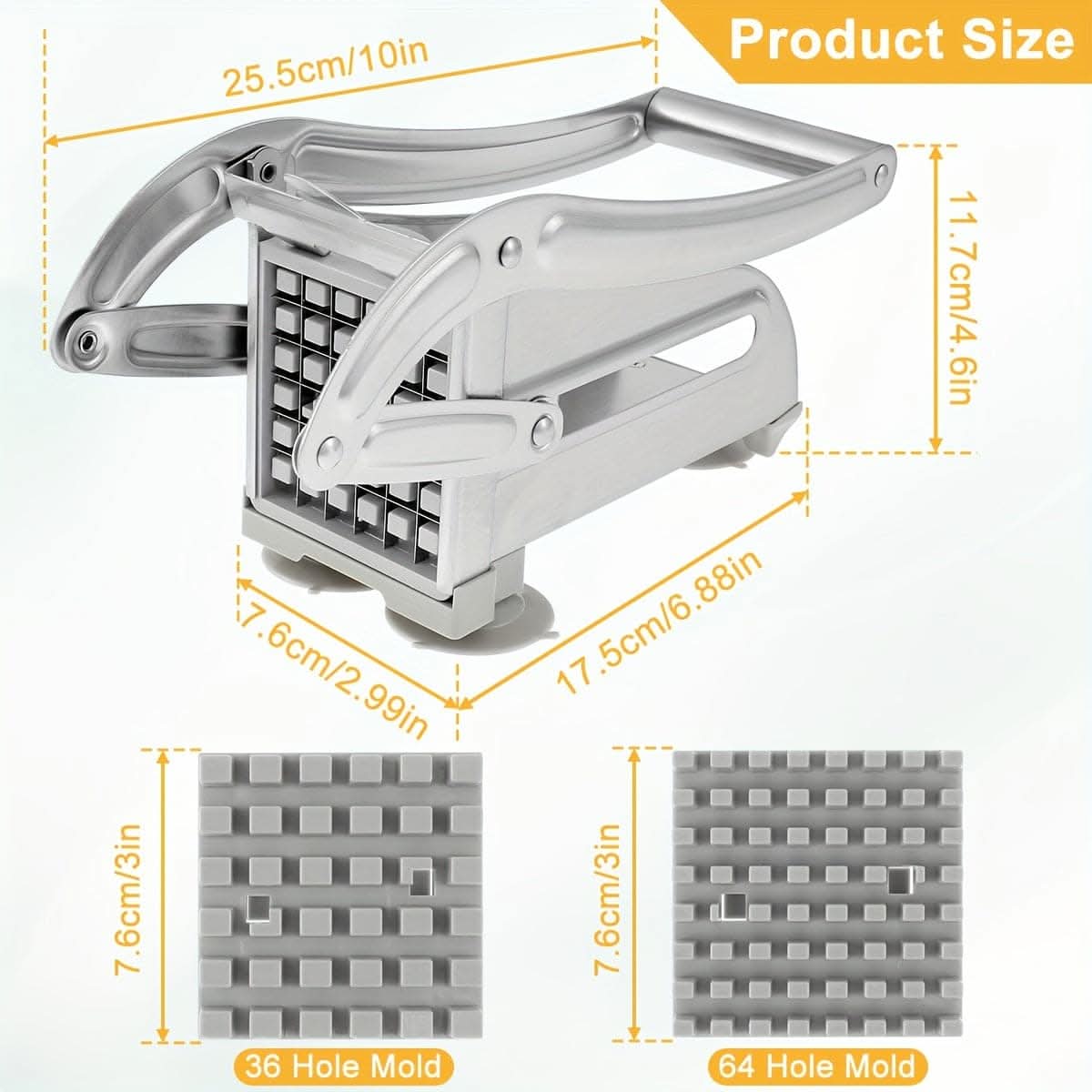 Make perfect fries with this stainless steel French fry cutter. Equipped with 36/46 hole blades, it’s a fast and efficient manual food slicer and dicer, ideal for potatoes, onions, and other vegetables. A versatile tool for crafting homemade fries and more.