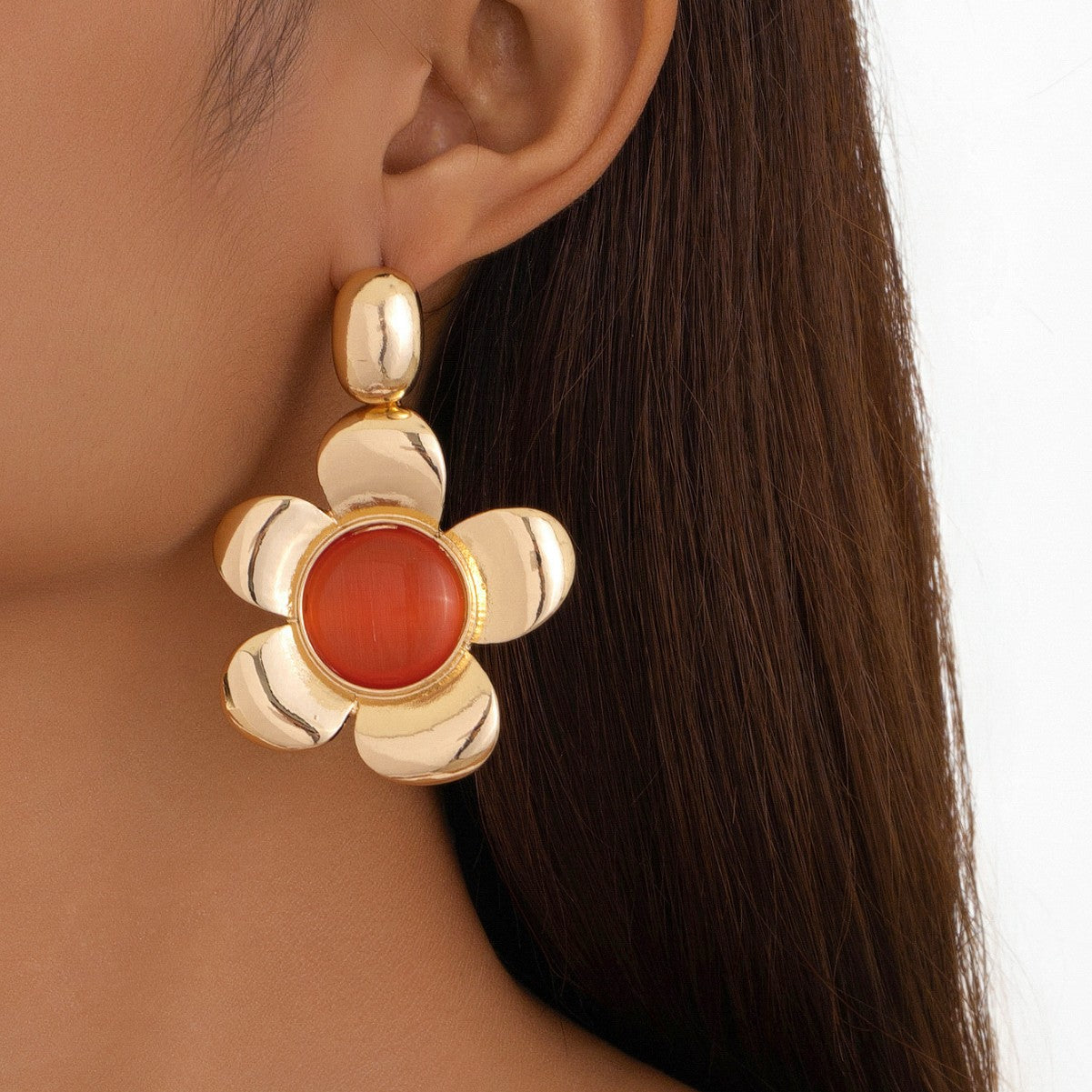 Channel timeless elegance with these French retro flower earrings, crafted for women who love statement-making accessories with a refined edge. Made from durable zinc alloy, they feature bold camellia-inspired blooms adorned with shimmering cat’s eye stones, adding light luxury and sophistication to any look. Their oversized yet balanced design brings drama and grace, perfect for pairing with evening dresses, chic office outfits, or casual ensembles needing a touch of flair. Lightweight enough for extended wear, these earrings offer both comfort and standout style. Ideal for women who appreciate unique, niche jewelry, they embody French-inspired retro charm while staying modern and versatile. Handpicked from Abroad, these earrings reflect global fashion trends and add a polished, artistic finish to your jewelry collection.