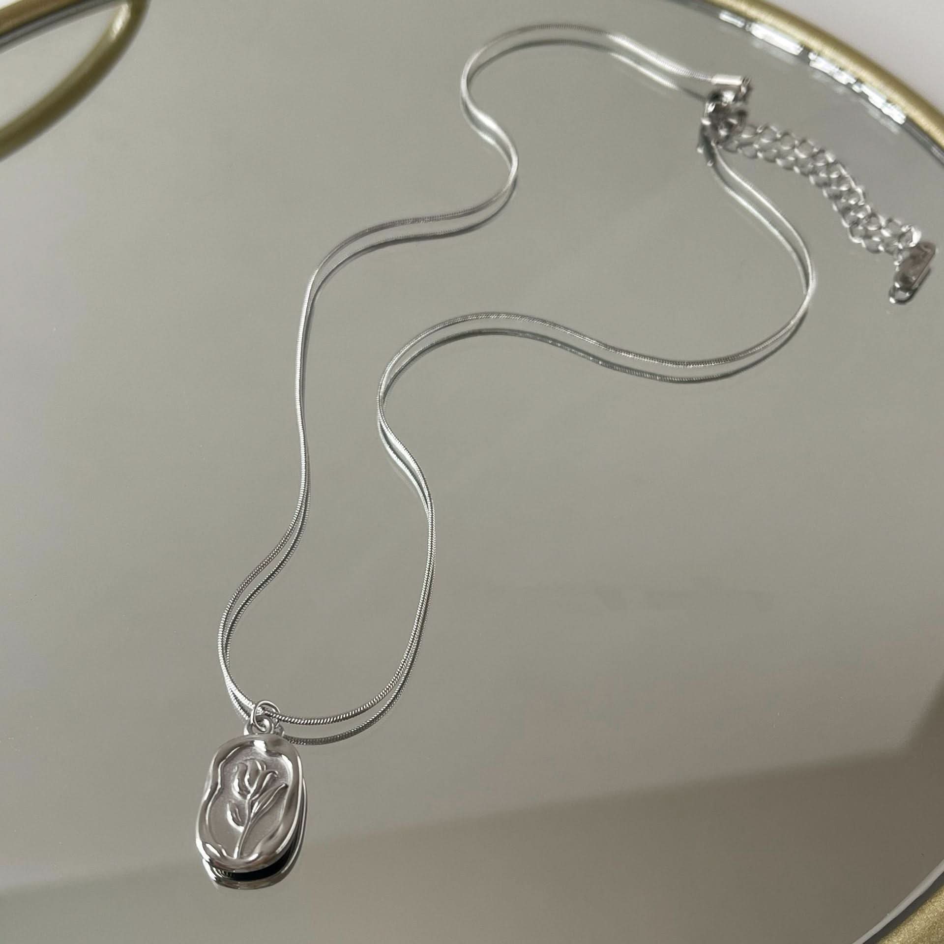 Add a touch of elegance to your look with this French retro-inspired rose pendant necklace. Crafted from durable stainless steel and silver-plated for lasting color preservation, this necklace features a delicate rose design that exudes sophistication. The snake bone chain style enhances its timeless appeal, making it the perfect accessory for both casual and formal outfits.