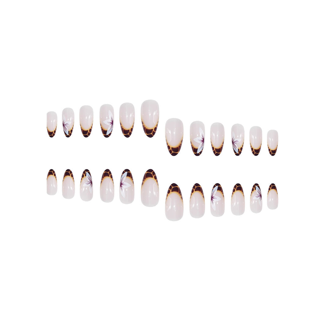 Combine sophistication and trend with these French tip press-on nails featuring a chic floral and leopard print design. Designed in a medium almond shape, this set blends nude and brown tones for a versatile, elegant look that complements any outfit. Crafted from durable acrylic, these nails are lightweight, comfortable, and easy to apply with glue, offering a salon-quality manicure at home without the hassle. Perfect for parties, casual outings, or simply adding a fashionable touch to your everyday style, the mix of floral charm and bold leopard accents creates a unique, stylish statement. Handpicked from Abroad, this nail set reflects international trends, bringing a touch of global elegance directly to your fingertips with effortless convenience.