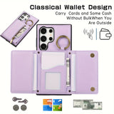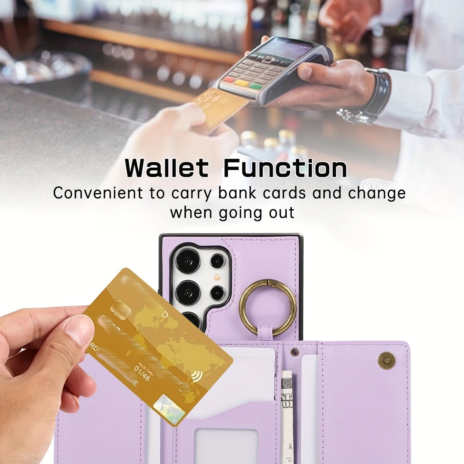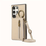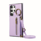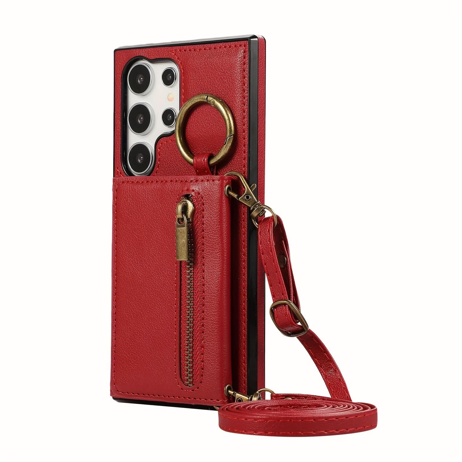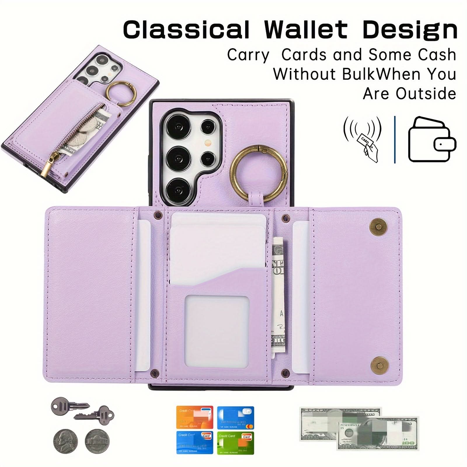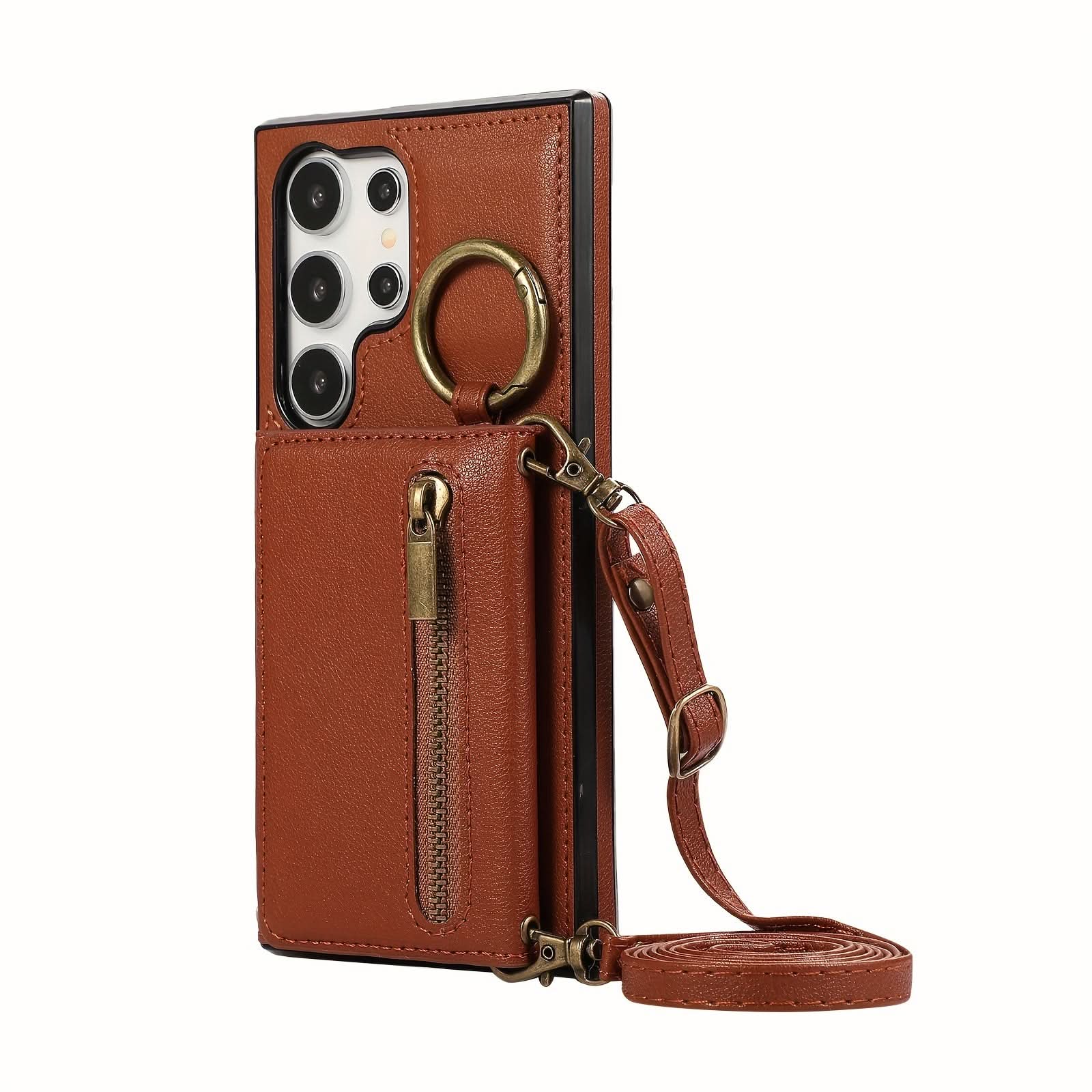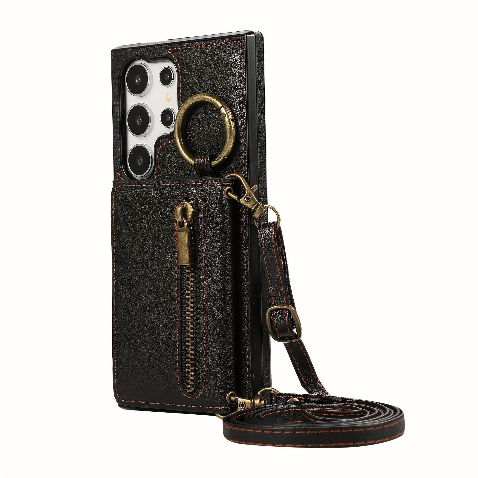 Elevate your Samsung Galaxy S24, S23, S22 & S21 Ultra’s style and functionality with this versatile tri-fold phone case, designed with a durable faux leather exterior. Featuring a convenient finger ring and a detachable long lanyard, this case allows for secure, hands-free carrying, ideal for busy days or casual outings. A unique zipper pocket adds extra storage for small essentials, blending practicality with a sleek look.