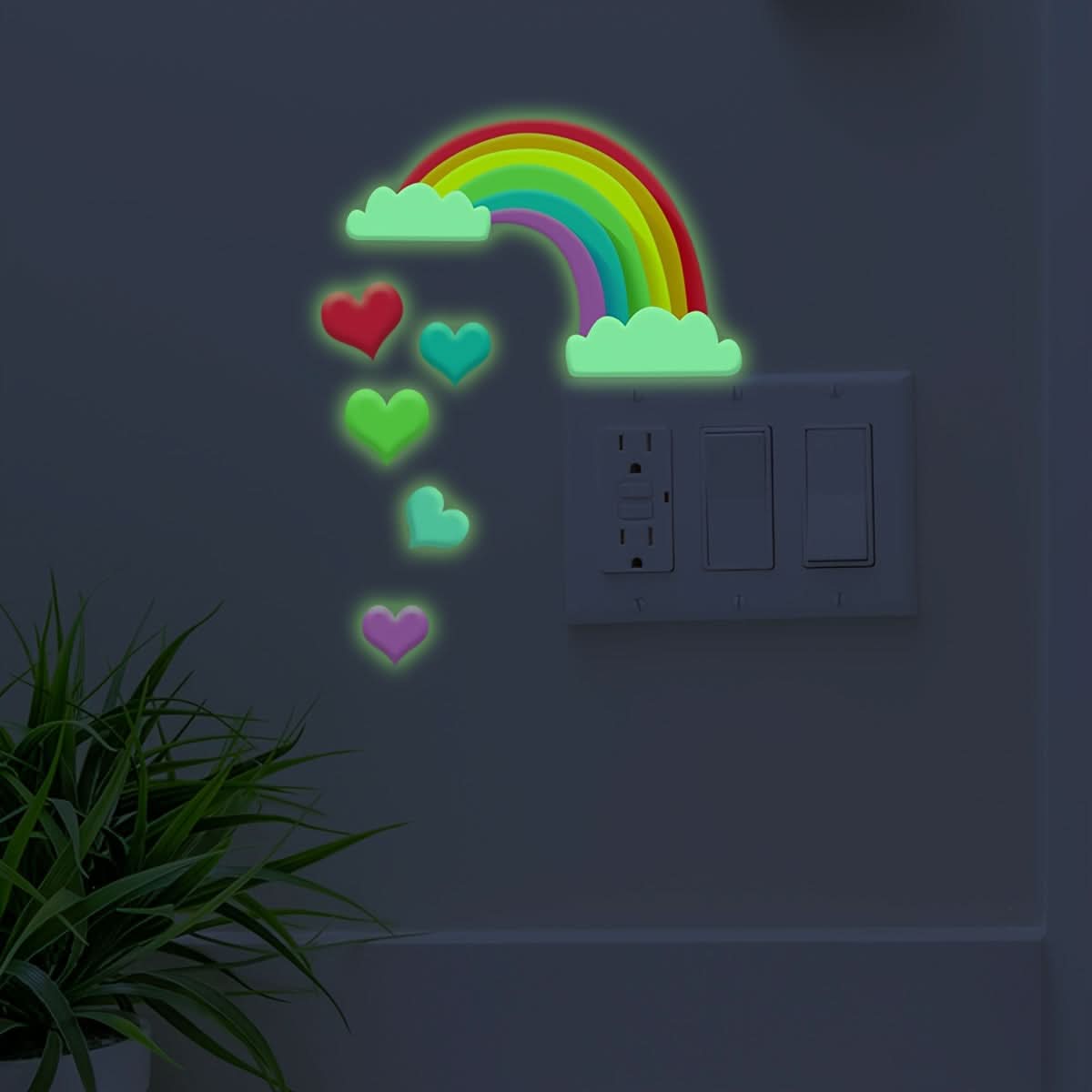 Brighten up any room with this enchanting Glow-in-the-Dark Rainbow Wall Decal, complete with vibrant clouds and heart accents. Made from durable plastic, this self-adhesive wall sticker effortlessly adheres to any smooth surface, making it a delightful addition to nurseries, kids’ rooms, or playrooms. By day, the cheerful colors add a lively touch to your decor, and by night, the decal gently glows, creating a soothing atmosphere for bedtime. Designed to be easily removable without leaving marks, it’s a fun, mess-free way to refresh your space seasonally or year-round. Perfect for parents looking to create a magical, calming environment for their little ones!