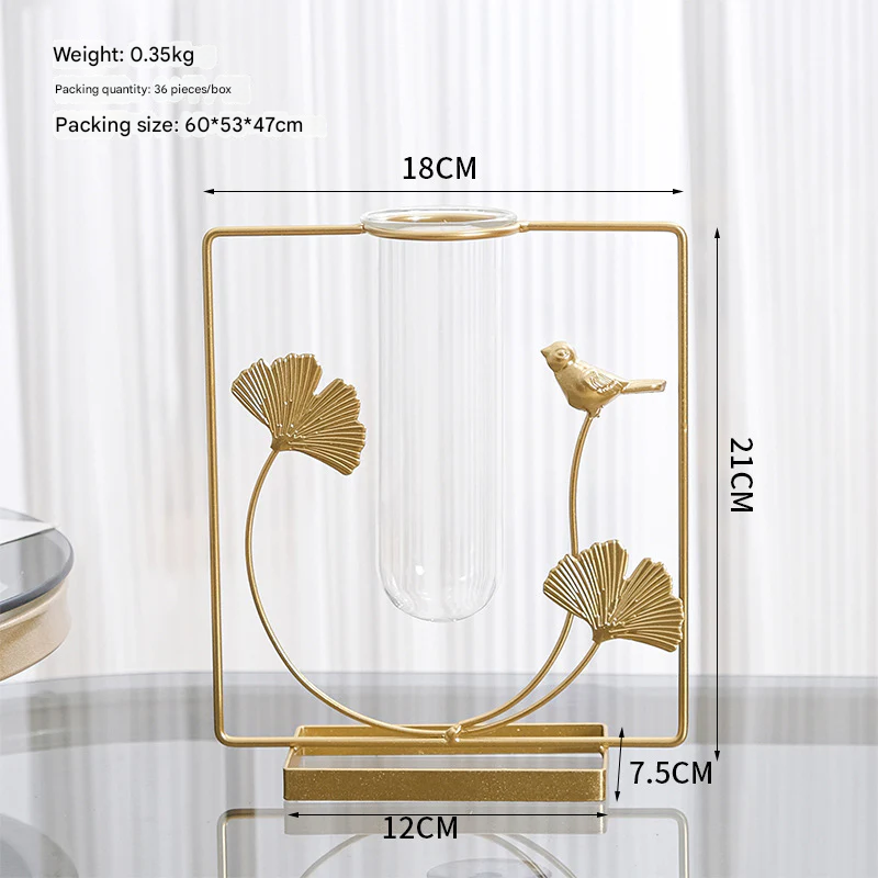 Elevate your space with the elegance of this Gold Bird Flower Vase, a standout piece designed to enhance your dining table, coffee table, or entryway. Crafted from premium metal in a sleek European style, this decorative vase features a delicate bird detail perched on top, symbolizing peace and charm. Its versatile shape—available in round, square, or hexagonal—adds modern sophistication to any room. Perfect for displaying artificial flowers, it brings life and luxury to your living room or dining setup without the maintenance of real blooms. Whether styled as a centerpiece or accent decor, it blends effortlessly into both classic and contemporary homes. Handpicked from Abroad, this high-end vase is a beautiful balance of artistry and practicality for tasteful home decoration.