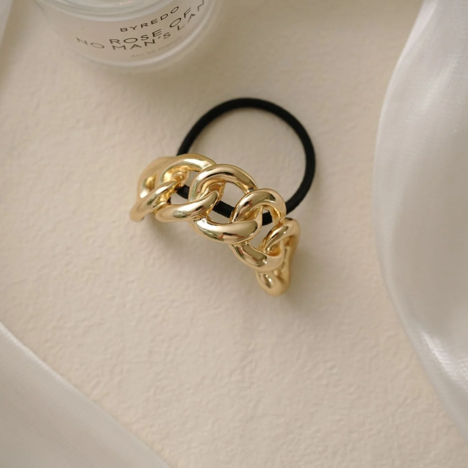 Add a bold yet elegant touch to your everyday style with this Gold Chain Hair Tie. Designed in a chic minimalist style, it features a high-elasticity band paired with a glossy gold chain link accent—perfect for elevating ponytails or low buns with minimal effort. This stylish hair accessory blends comfort with statement-making appeal, staying secure without pulling or damaging hair. Whether you're dressing up for a night out or adding polish to a casual outfit, it delivers versatility and timeless flair. Handpicked from Abroad, it reflects contemporary European-inspired design in a sleek, wearable form. A must-have for those who love fashion-forward functionality, this piece is your new go-to for easy yet elevated hair styling.