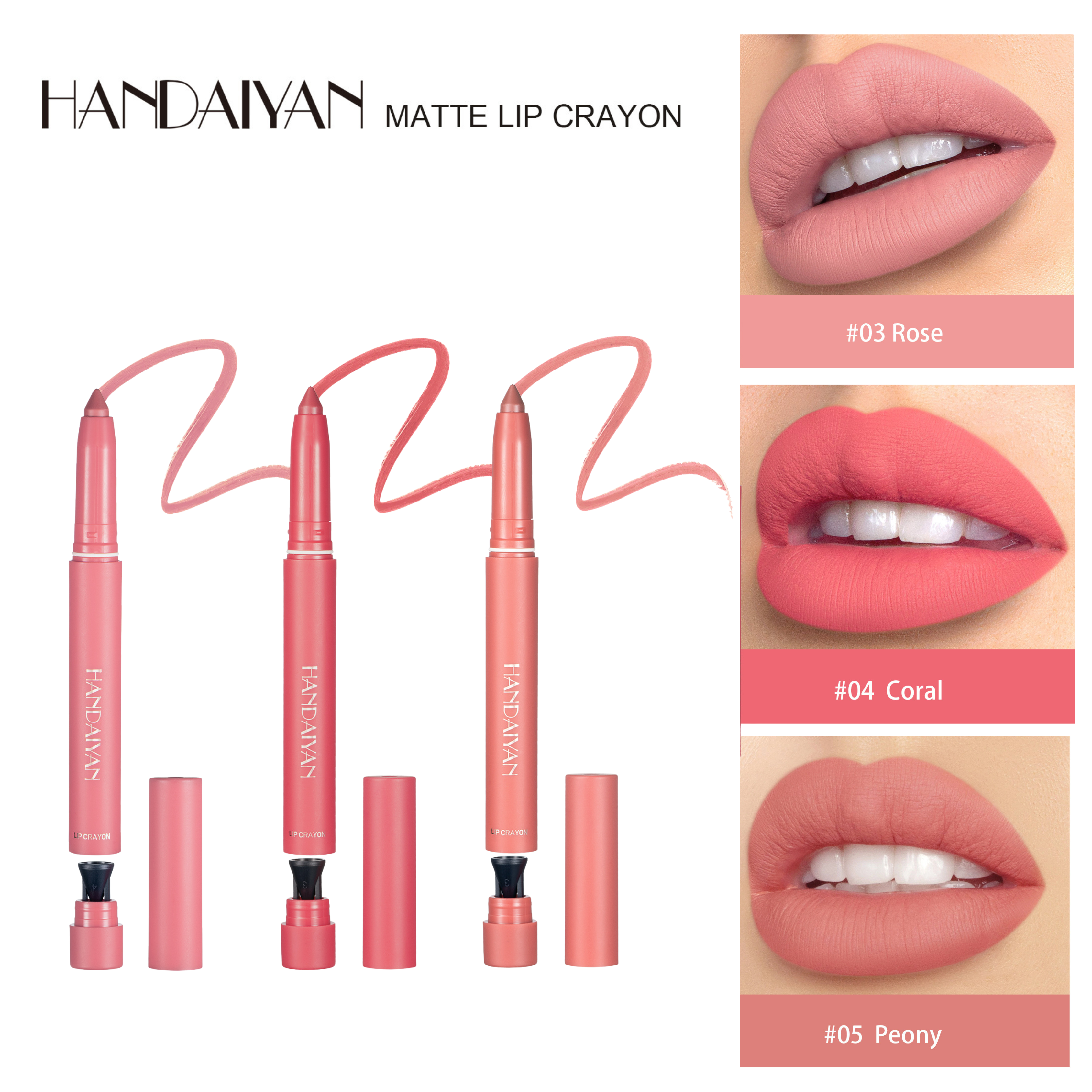 Define your lips with precision using the HANDAIYAN Matte Lip Liner Pencil. This waterproof, long-lasting lip pencil glides on effortlessly, delivering rich, highly pigmented color that won’t smudge or fade throughout the day. The smooth, matte texture ensures a flawless finish, perfect for shaping, outlining, or filling in your lips for a fuller look. Designed with a built-in sharpener, this lip liner offers convenience and precision every time. The non-stick cup formula keeps your lip color intact, making it ideal for all-day wear. Whether you’re creating a bold statement lip or a natural look, this versatile pencil is a must-have in any makeup collection. Available in a range of shades to complement every skin tone, it’s the perfect beauty essential for beginners and professionals alike.