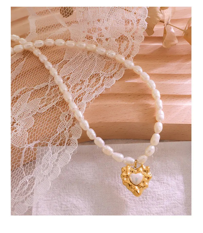 Elevate your style with the Heart Glow Beaded Necklace Set, crafted from durable titanium steel that promises long-lasting shine without fading. Featuring a vintage pearl design with a hammered love heart pendant, this lightweight jewelry set exudes effortless elegance and charm. Perfect for everyday wear or special occasions, its lobster clasp ensures a secure and comfortable fit. Handpicked from abroad, this versatile necklace set blends classic vintage appeal with modern durability, making it a must-have addition to any jewelry collection. Whether dressing up for an event or adding subtle sophistication to your daily look, this necklace offers timeless beauty with a contemporary twist. Experience quality and style in one