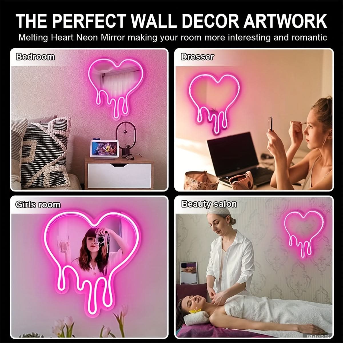 Add a touch of elegance and romance to any space with this Heart-Shaped LED Neon Mirror Wall Decor. Featuring a beautifully carved design, this exquisite silver wall art lamp creates a warm, inviting atmosphere with its dimmer function, perfect for setting the mood in your home, studio, salon, or tattoo parlor. The energy-efficient, USB-powered LED lights ensure long-lasting performance while adding a contemporary flair to your space. Whether you're decorating for Valentine's Day, a birthday, or an anniversary, this versatile neon sign makes a memorable gift. The easy switch control and compatibility with Amazon Alexa make it simple to operate, allowing you to set the perfect ambiance in any room. A beautiful, functional piece of art that enhances your décor with a modern, romantic vibe.