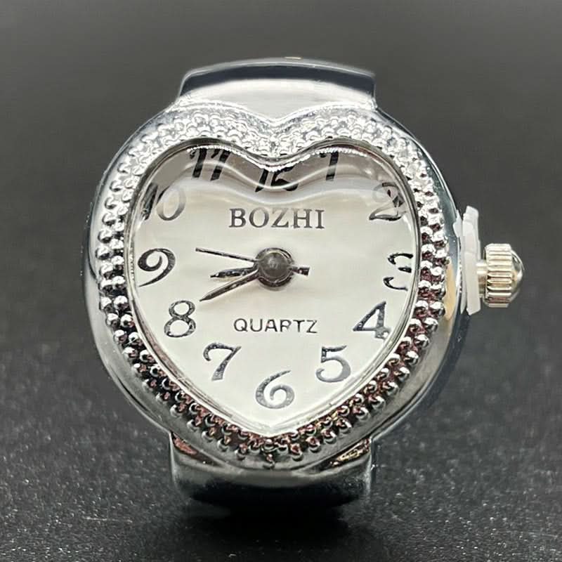 Add a touch of charm to your look with this heart-shaped ring watch, a stylish blend of fashion and function. Designed with a sleek 20mm quartz dial, this unique finger watch offers precise timekeeping while doubling as a statement accessory. The stainless steel band ensures durability, while the alloy case provides a lightweight and comfortable fit. Featuring a quartz glass mirror, this watch comes in white, purple, pink, and black, making it a perfect match for any outfit. Whether you're looking for a romantic gift or a trendy unisex jewelry piece, this mini love ring watch is a must-have. Please note: Not waterproof, handle with care.