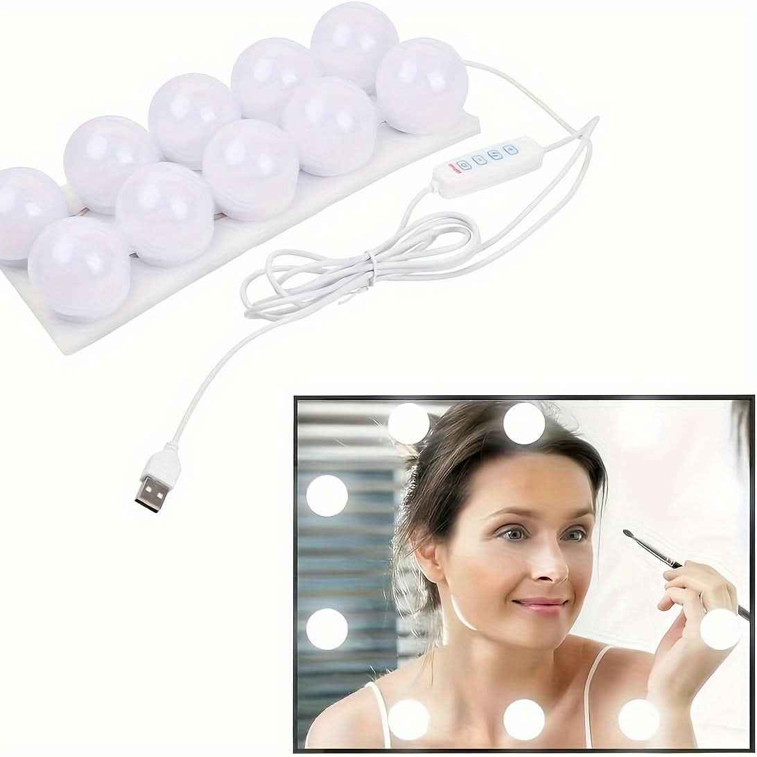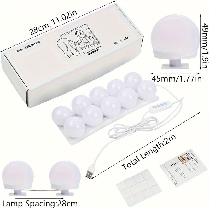 Transform your beauty routine with our Hollywood Style LED Vanity Mirror Light Kit. Featuring 10 bright, energy-efficient bulbs, this USB-powered lighting solution offers three color modes and nine adjustable brightness levels, ensuring you achieve the perfect glow for any occasion. Designed with a modern aesthetic, this versatile light kit is perfect for your dressing table, bathroom, or bedroom. The easy-to-install, detachable fixture allows for seamless integration into any space, while the durable plastic construction ensures long-lasting use. Whether you're applying makeup or getting ready for a night out, our vanity light kit provides the ideal ambient lighting to enhance your beauty experience. Elevate your daily routine and enjoy salon-quality lighting at home!