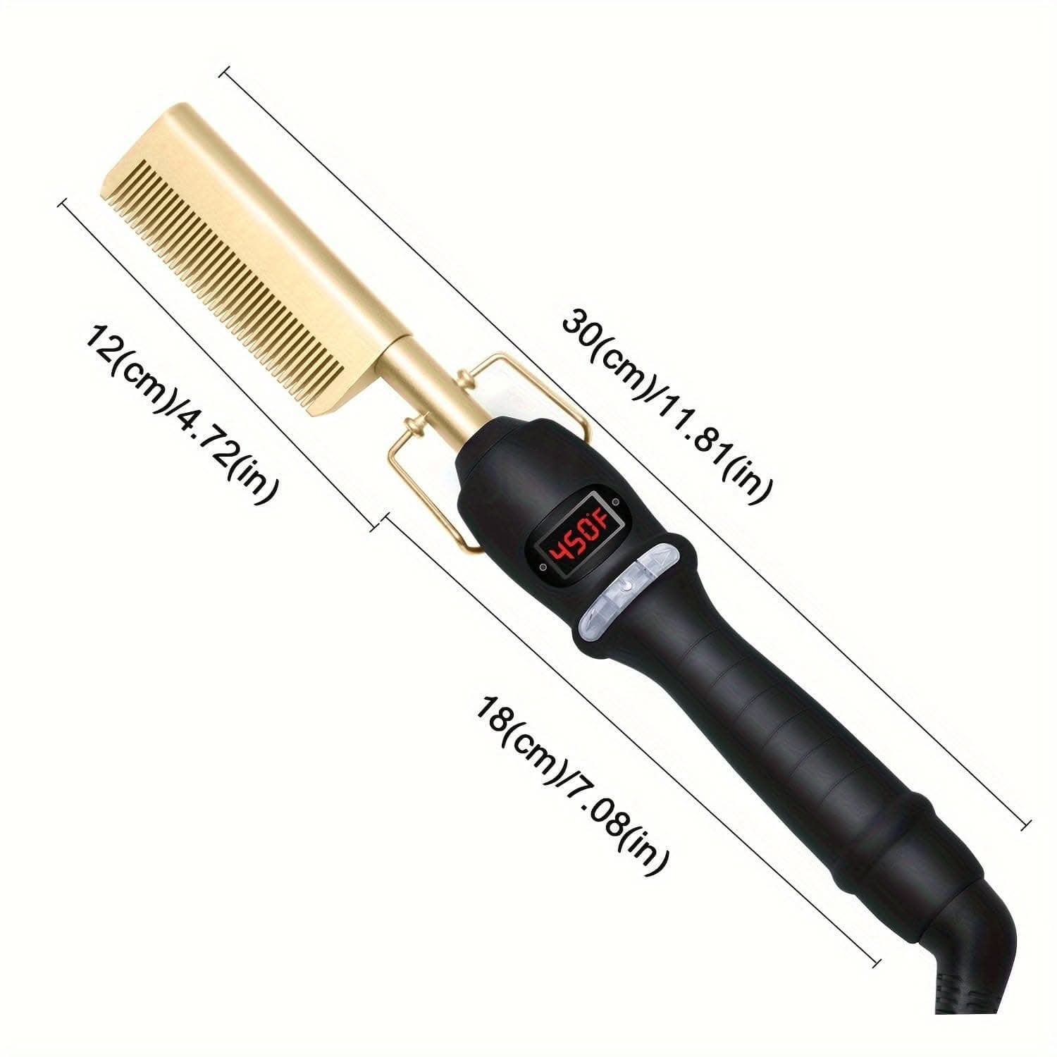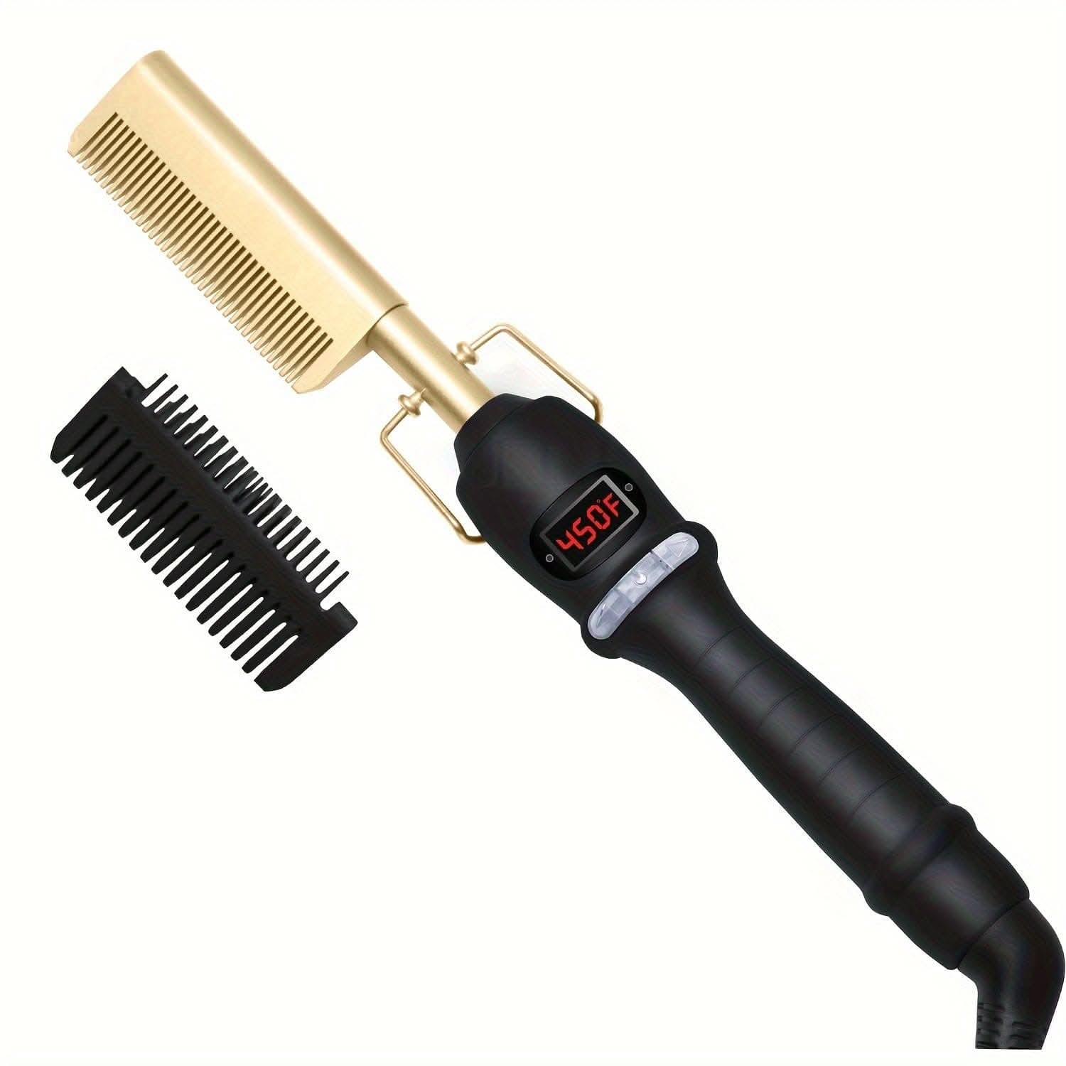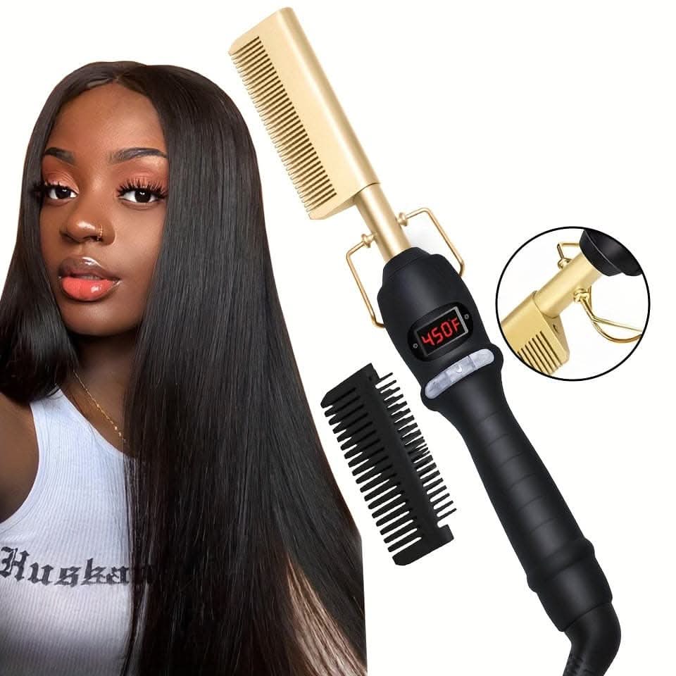 This electric hot comb features a digital display and high heat ceramic plates, designed for professional styling and effective hair straightening. With its multifunctional copper design, it's ideal for managing thick hair and achieving sleek, smooth results.