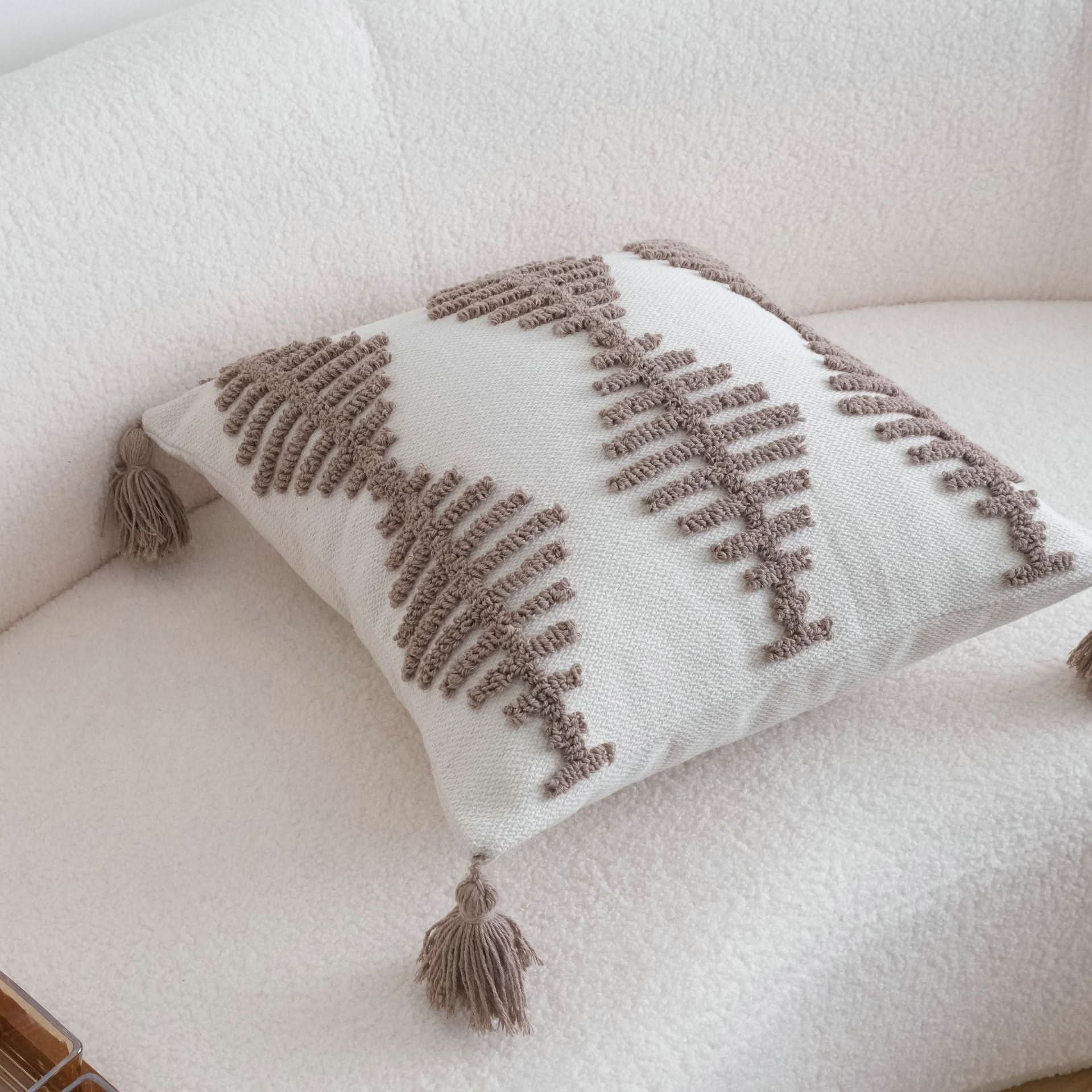 Enhance your decor with the INS Style Fishbone Loop Pillow. This plush velvet cushion, featuring a unique wabi-sabi embroidered cotton and linen cover, adds a touch of artisanal elegance to any sofa, hotel room, or model space. Perfect for a blend of comfort and sophisticated charm.