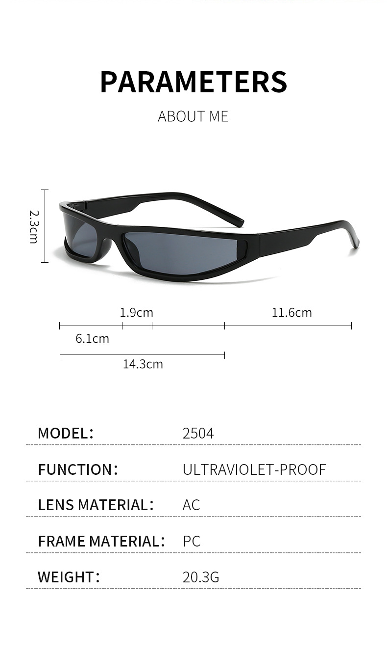 Turn heads with the [Jackboys] Sleek Futuristic Glasses—a bold, modern twist on retro-futurism. These narrow, Y2K-inspired sunglasses feature a streamlined box frame and tinted lenses that deliver high-impact streetwear energy. Whether you're on the move, posing for photos, or hitting up a festival, these glasses add that undeniable edge to your look. Built with durable yet lightweight PC material and UV400 protection, they’re just as functional as they are stylish.