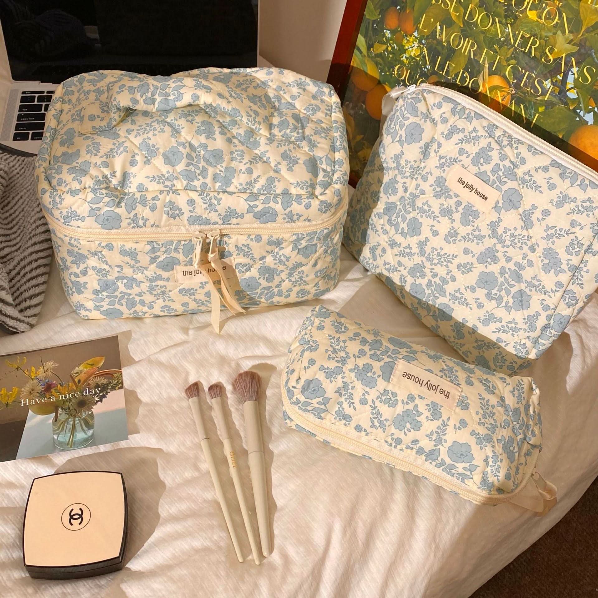 This Korean-style Bow Cosmetic Bag is the perfect blend of style and function for storing all your beauty essentials. Crafted from soft cotton with a solid color design and charming floral accents, it brings a touch of elegance to your makeup collection. Available in large, medium, and small sizes, it suits a variety of storage needs—whether for cosmetics, toiletries, or travel essentials.