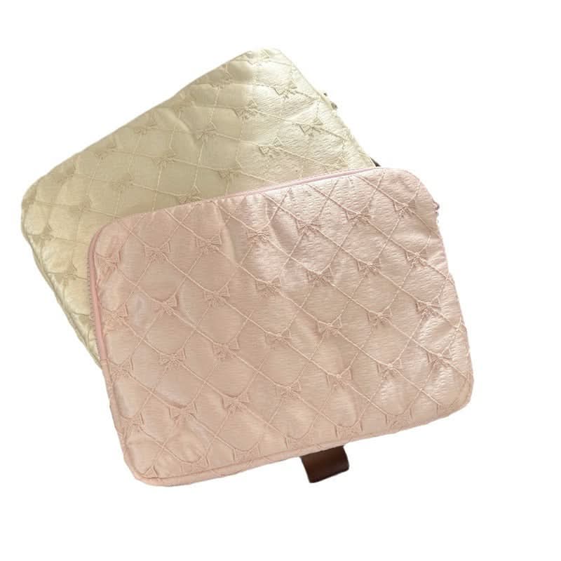 Add a touch of elegance to your tech accessories with this Lace Embroidered Tablet Laptop Bag. Available in 11-inch, 13-14-inch, and 15-15.6-inch sizes, this stylish bag fits most tablets and laptops. Made from breathable silk and featuring a lace bowknot design, it’s perfect for anyone looking to combine fashion with functionality.