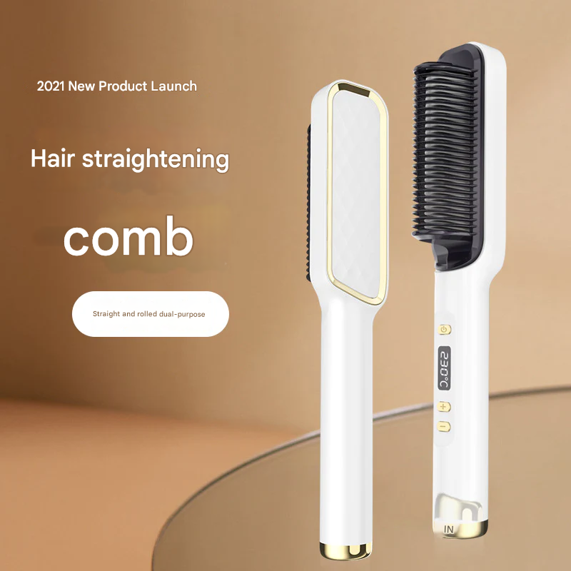 Transform your hair styling routine with the LCD Hair Straightener & Curling Comb, a dual-purpose tool designed for quick, salon-quality results at home. Featuring a tourmaline ceramic heating element, this versatile device combines negative ion technology to reduce frizz, add shine, and protect your hair from heat damage. With an adjustable temperature range of 80-230°C, it’s perfect for all hair types, allowing you to achieve sleek straight styles or bouncy curls in just 3-5 minutes.