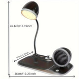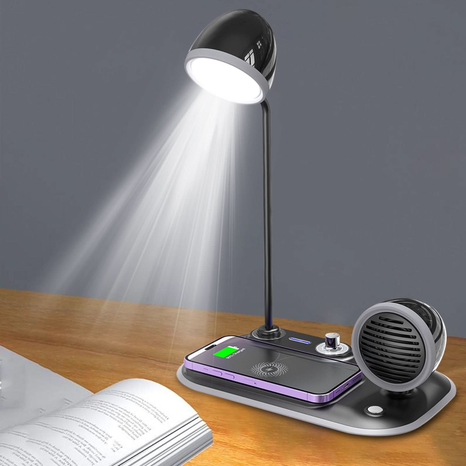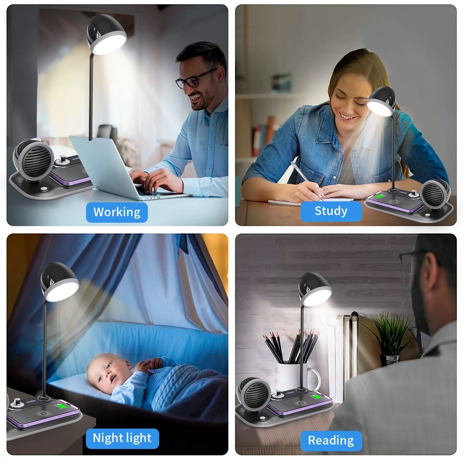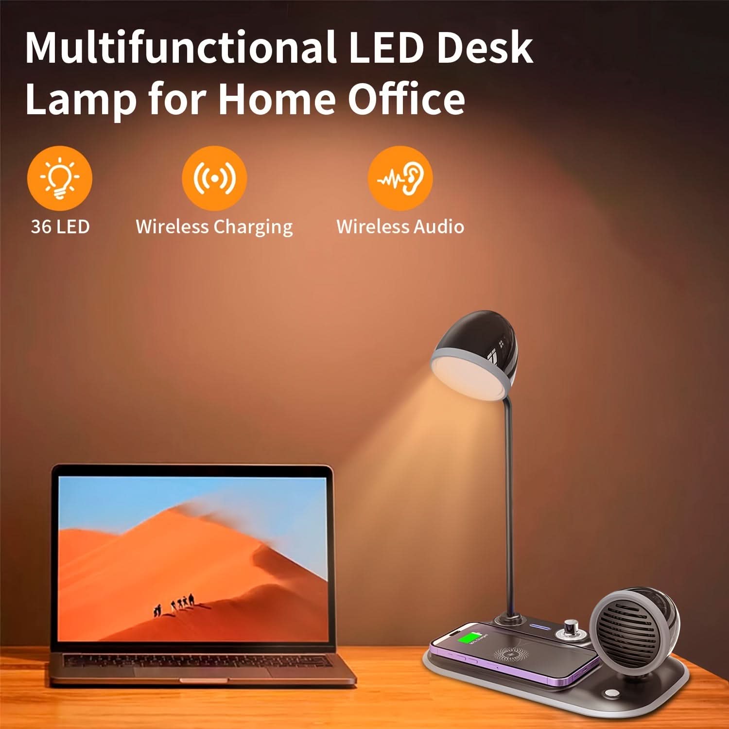 Transform your workspace with the LED Desk Lamp, a versatile 3-in-1 solution for your home office or bedroom. This sleek lamp features three lighting modes, providing perfect illumination for reading, working, or relaxing. Equipped with a 15W wireless charger, it offers fast, efficient charging for your devices, while the built-in speaker adds ambiance to your space. Whether you’re using it as a reading lamp or a stylish light for your desk, this lamp combines functionality with modern design. With USB power and a USB-C interface, it's convenient and easy to set up. Its energy-efficient LED technology ensures long-lasting performance, while the wireless charging function supports quick, hassle-free power-ups for your phone or tablet. Ideal for anyone looking to enhance their productivity and create a more dynamic, connected workspace.