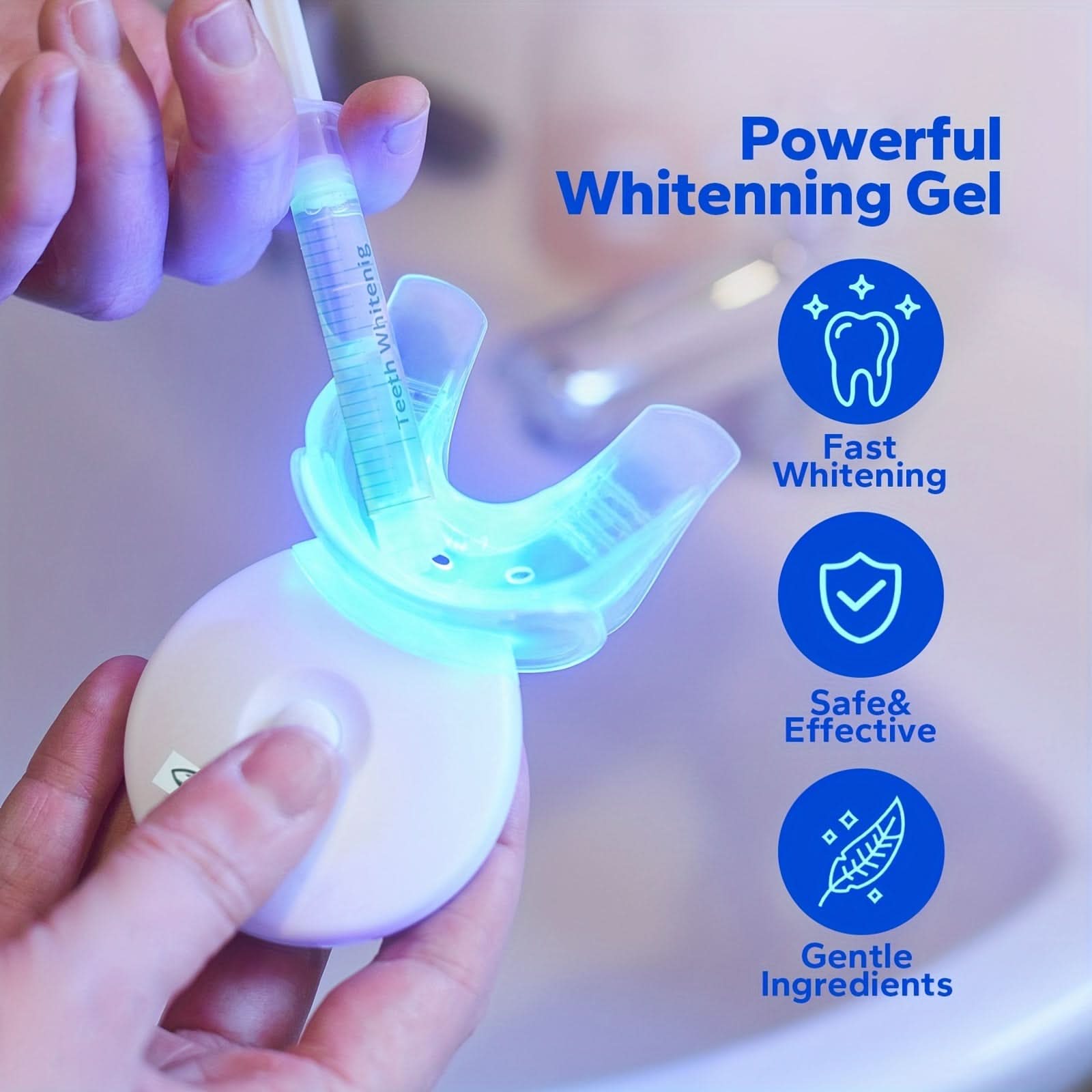 Achieve a brighter smile at home with this professional teeth whitening kit, featuring a fast and gentle LED light system. Equipped with two mouth trays, a brush, and whitening gel, this kit provides everything you need for effective whitening results. The LED light accelerates the whitening process, helping to remove stains and brighten your teeth in less time. Easy to use and safe for sensitive teeth, it’s a convenient way to achieve professional-level whitening without the dentist visit. The included tray case ensures clean storage, making it ideal for home and travel. Get a radiant smile with this powerful, user-friendly whitening solution!
