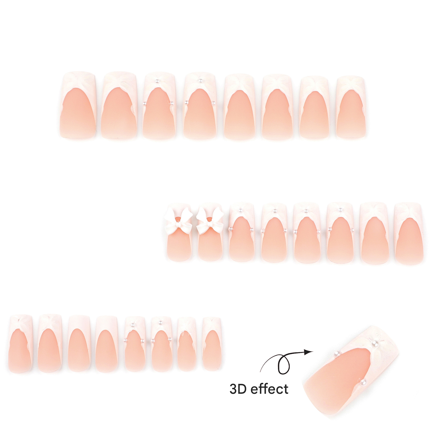 Elevate your manicure game with these long coffin press-on nails designed for luxe bridal looks and special occasions. Featuring an elegant nude base with sculpted white 3D bows and delicate pearl accents, these glue-on nails are a true showstopper. Whether you're walking down the aisle or dressing up for an event, they add a touch of luxury and timeless charm to your look. The matte French-style base contrasts beautifully with the intricate, raised detailing—giving you salon-level artistry without the salon visit. Handpicked from Abroad, these nails are crafted for comfortable wear, durability, and effortless glam. They're easy to apply, reusable with proper care, and perfect for bridal parties or anyone who loves fashion-forward nail art. Add these to your collection and enjoy a premium nail transformation in minutes.