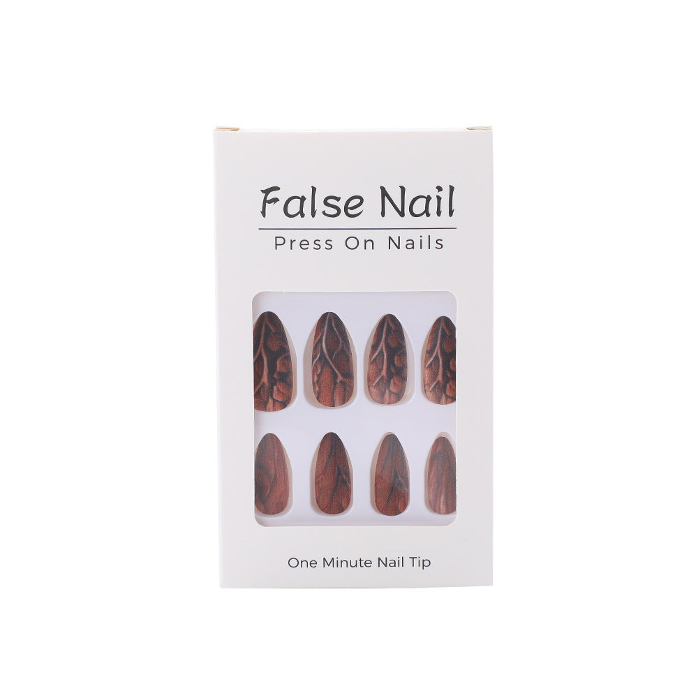 Bring the beauty of nature to your fingertips with this wood grain press-on nails set. Crafted in a striking long stiletto shape, these nails feature a matte wood-brown finish with intricate carved grain and branch-inspired patterns, giving a unique and organic look. Made from high-quality acrylic, they’re lightweight, durable, and easy to apply, offering salon-level style in minutes. Perfect for those who love nature-inspired fashion with a bold edge, these nails blend rustic charm with modern elegance. Whether for everyday wear, themed events, or making a creative style statement, they deliver a look that’s truly unforgettable. Handpicked from Abroad, this set combines artistry with functionality, ensuring your nails stand out with natural sophistication.
