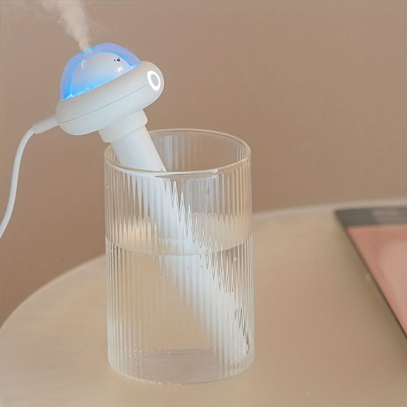 This portable, compact USB humidifier is the perfect addition to your desk, bedroom, or car. Featuring a unique luminous aerospace bear design, it brings both functionality and fun to any space. With a 300mL/h humidification capacity and low noise operation, it ensures a peaceful environment, whether you're working, sleeping, or traveling. The two spray modes offer flexibility, while the colorful light adds a calming touch to any room.
