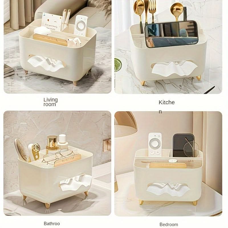 Transform your living space with our Luxury Multi-Functional Tissue Box and Organizer. This stylish napkin holder is not only perfect for tissues but also serves as a chic storage solution for remote controls and other small desktop items. Crafted from high-quality plastic in elegant colors like white, beige, and green, it seamlessly blends with any home decor, adding a touch of sophistication to your coffee table or living room. The unique design allows for easy access to tissues while keeping your space tidy and organized. Ideal for both everyday use and special occasions, this versatile accessory is a must-have for those who appreciate both functionality and aesthetics. Elevate your home decor with this creative tissue dispenser that enhances both style and convenience!