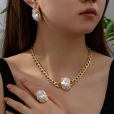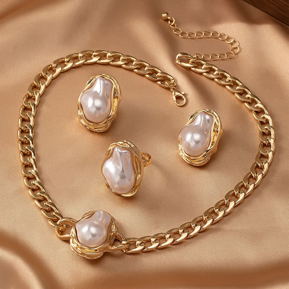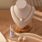 Elevate your style with this stunning Luxury Pearl Necklace and Earrings Set, designed for the modern woman who loves a touch of elegance and sophistication. Crafted from durable alloy with a golden finish, this set features a unique heart-shaped pendant, symbolizing love and timeless beauty. The set includes matching earrings, a necklace, and hand jewelry, making it a complete ensemble for any occasion. Ideal for evening wear, special events, or adding a luxurious flair to everyday outfits, this set exudes charm and grace. With its European and American-inspired design, it's perfect for fashion-forward women who appreciate high-quality, eye-catching accessories. Whether you're dressing up for a formal event or simply adding a touch of luxury to your daily look, this pearl set is the perfect choice.