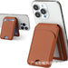 Upgrade your everyday carry with this Mag Safe-compatible leather card holder, designed for secure storage and hands-free convenience. Featuring a built-in metal stand, this sleek and durable wallet easily attaches to your iPhone, offering a strong magnetic hold while allowing you to prop up your device for comfortable viewing.
