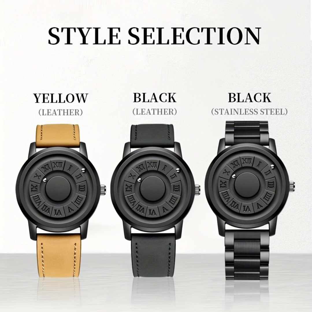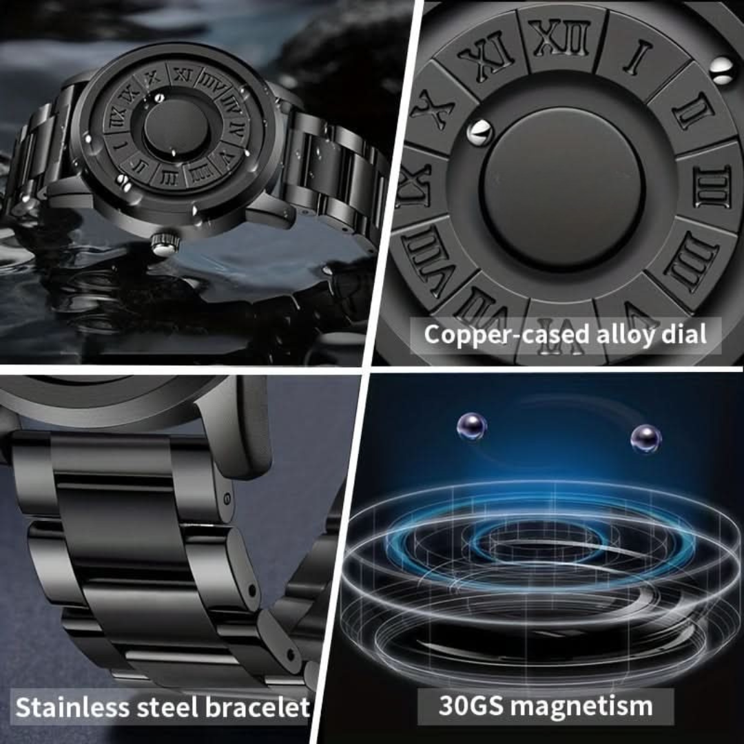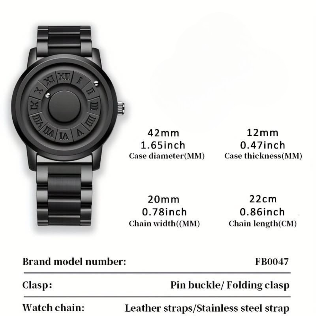 The watch features 16 neodymium magnetic beads that rotate with perfect fluidity. Each bead is precisely calibrated to maintain alignment while allowing smooth 360° rotation with wrist movement.