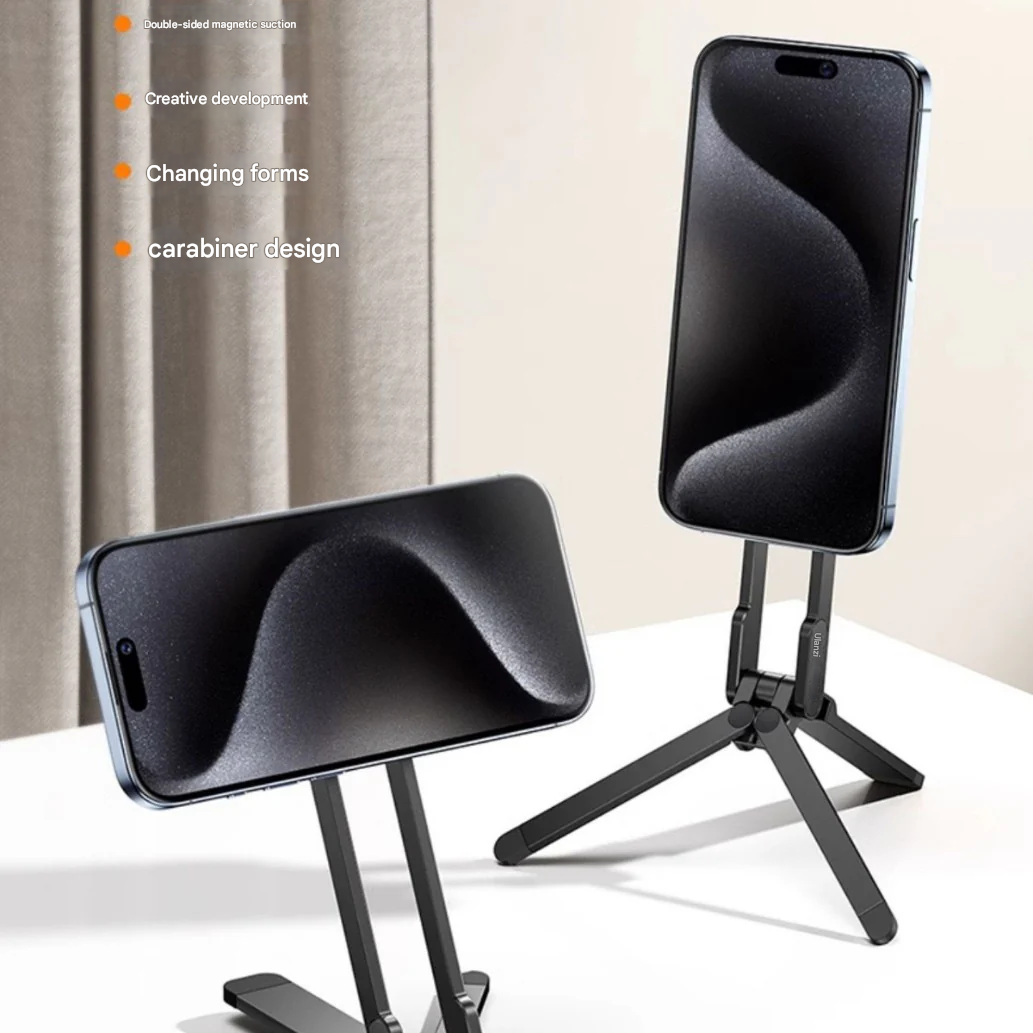 Capture the perfect shot or go live anywhere with this MagSafe-compatible carabiner phone stand, a must-have for content creators and everyday users. Crafted from premium aluminum alloy and silicone, this foldable magnetic phone tripod is strong, stable, and ultra-portable. The 360° rotating base allows you to switch angles with ease, whether you're snapping photos, recording video, or making video calls.