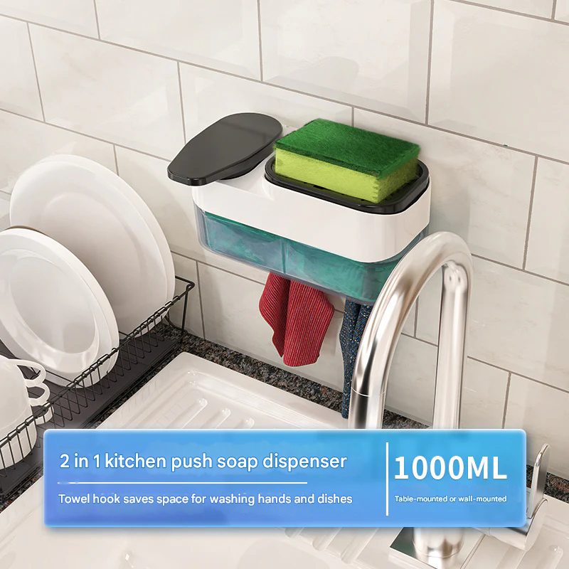 Upgrade your kitchen cleaning routine with this Manual Soap Dispenser with Sponge Holder, part of our Best-Selling Worldwide International Collection. Crafted from durable ABS material and designed with a sleek, modern look, this 1000ml press-style soap dispenser is perfect for dishwashing liquid, detergent, or hand soap. Its smart push-down operation allows you to dispense just the right amount of soap directly onto the included sponge—saving time and reducing waste. Compact yet high-capacity, it helps keep your sink space organized and clutter-free.