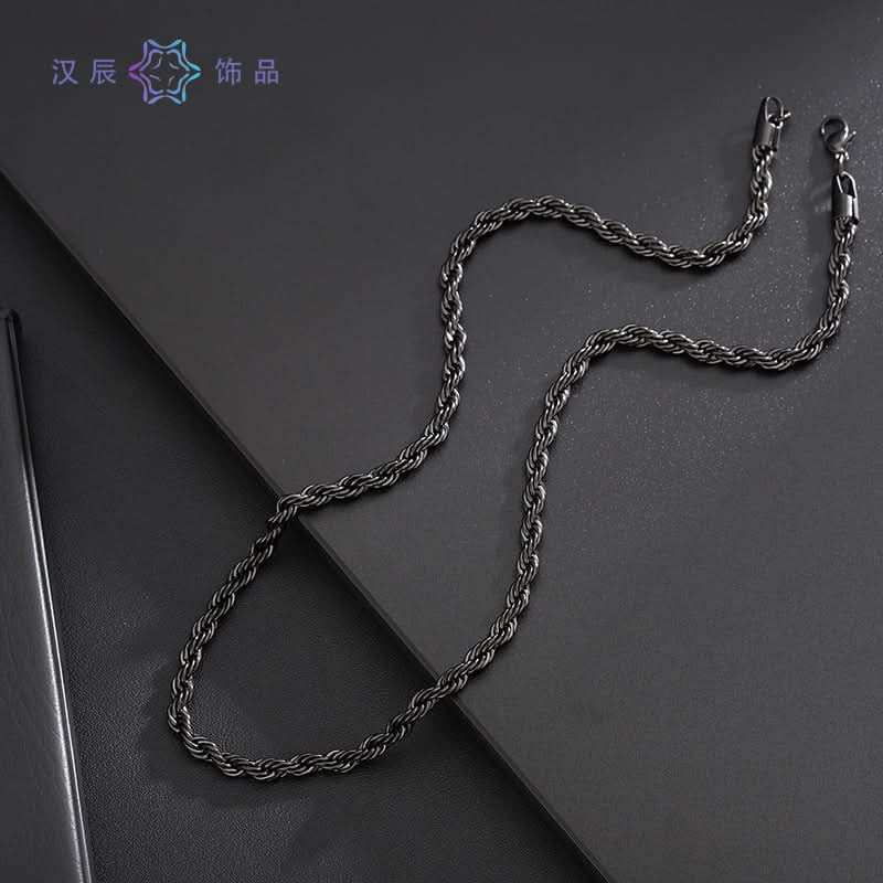 Elevate your style with this black titanium steel twisted chain necklace, a sleek and modern accessory designed for men who love minimalist yet bold fashion. Crafted from high-quality, no-fade titanium steel, this durable chain maintains its polished finish over time. The twist chain design adds texture and depth, making it a versatile piece that pairs effortlessly with both casual and streetwear looks. With a comfortable 41-50cm length, it sits perfectly on the clavicle, making it ideal for layering or wearing solo. Whether you're into hip-hop, urban, or high-end fashion, this trendy chain necklace is a must-have accessory that adds an instant edge to any outfit. Perfect for daily wear or gifting, it’s a statement piece that never goes out of style.