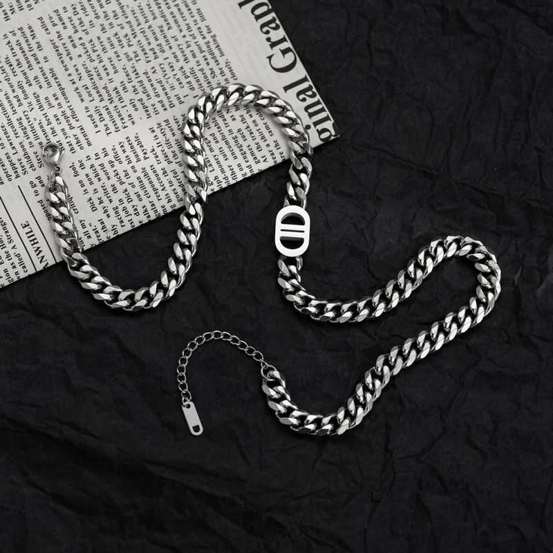 Make a bold statement with this men’s Cuban link necklace, crafted from premium titanium steel for durability and a sleek, high-end look. Designed with a retro-inspired, hip-hop aesthetic, this fade-resistant chain adds a stylish edge to any outfit. The Double D geometric pattern enhances its modern, trendsetting appeal, making it a versatile piece that complements both casual and streetwear styles.