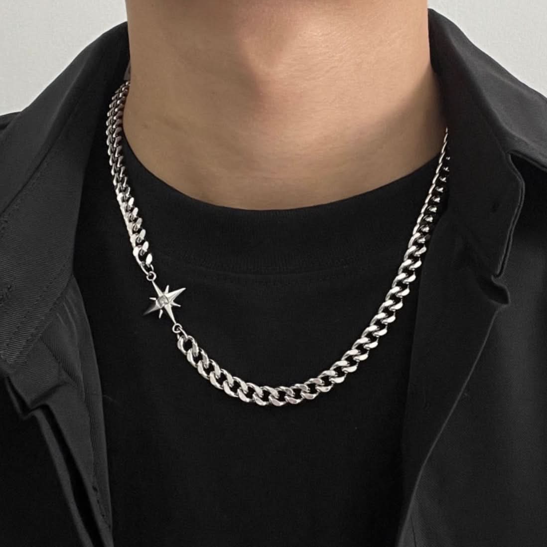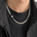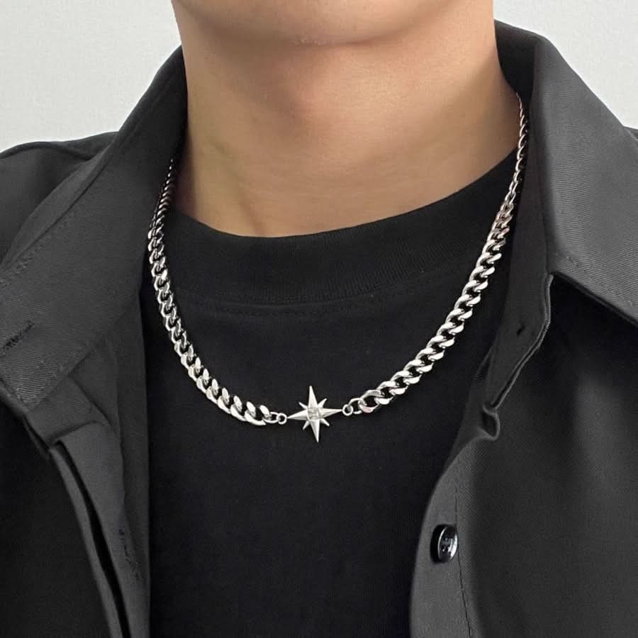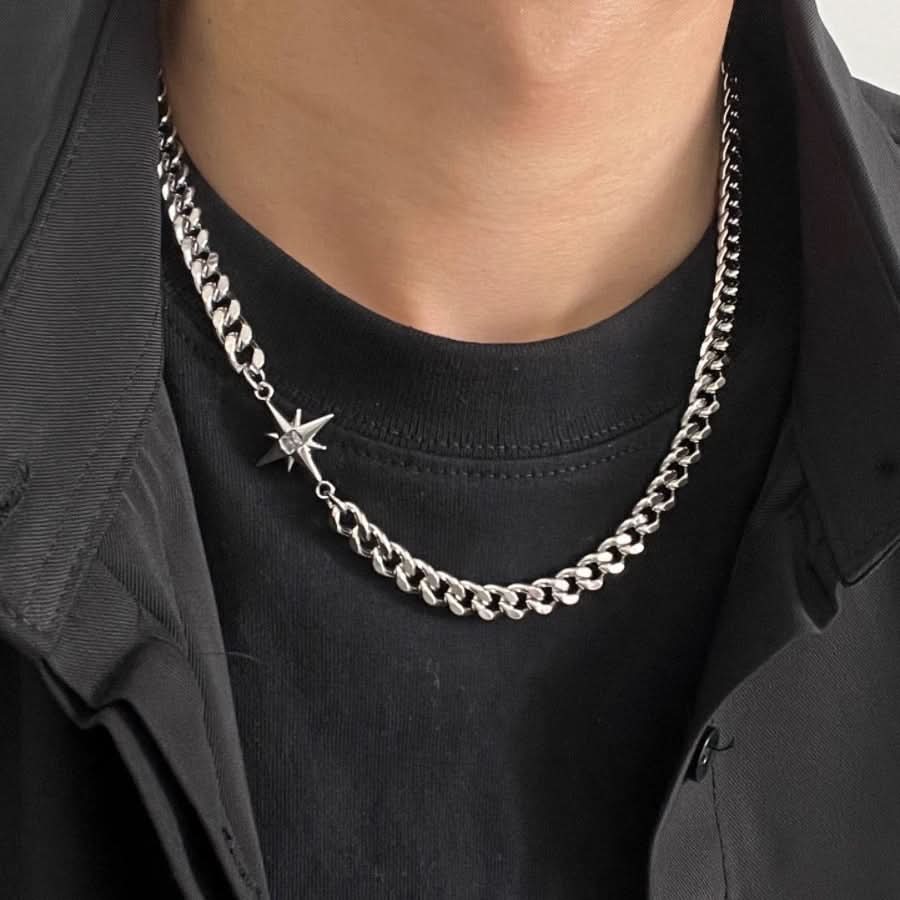 Elevate your streetwear style with this eight-pointed star titanium steel necklace, crafted for those who love bold, high-end hip-hop and punk fashion. The durable Cuban chain features a striking geometric pendant, symbolizing power and individuality. Made from premium titanium steel, this necklace is resistant to fading, tarnishing, and everyday wear.